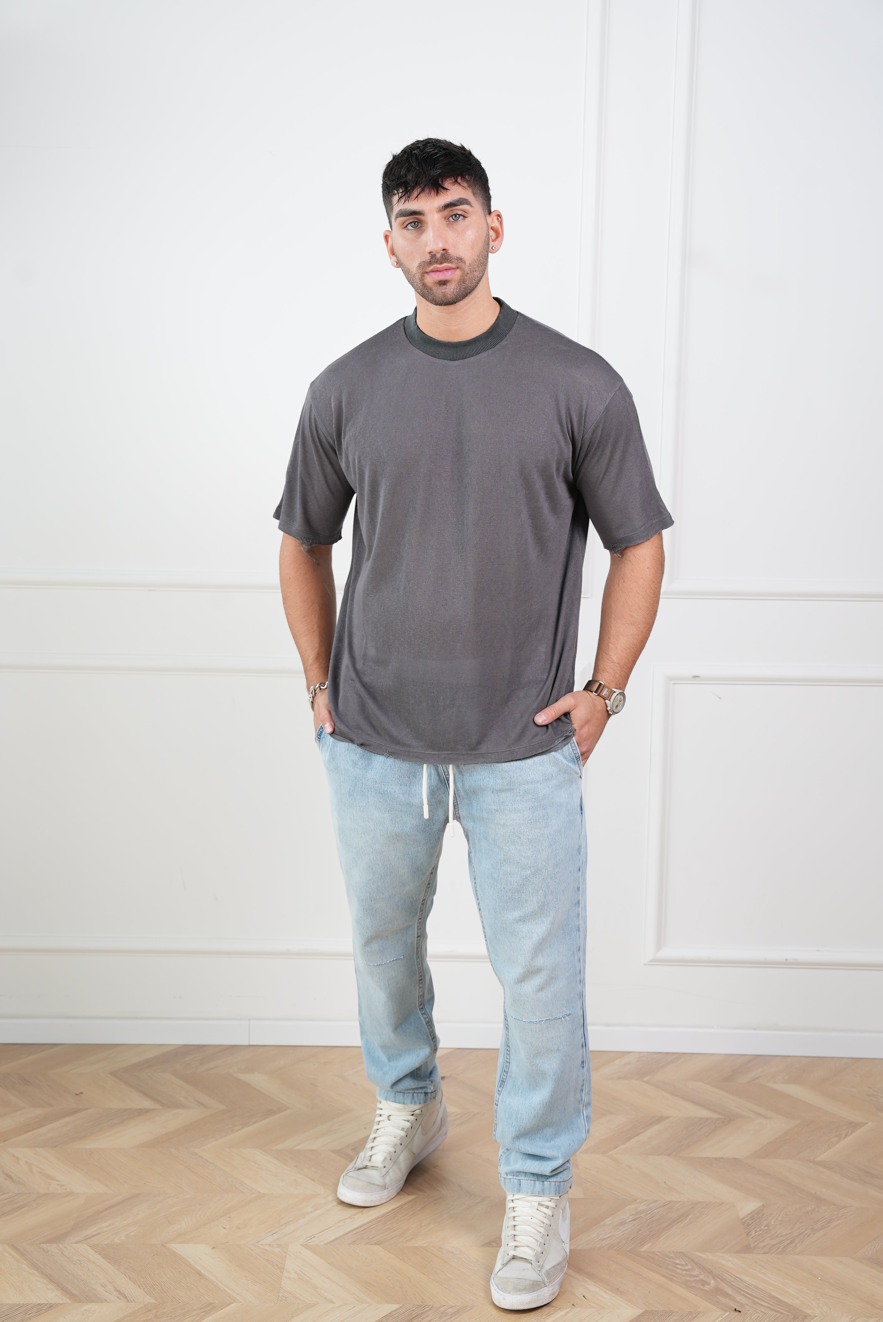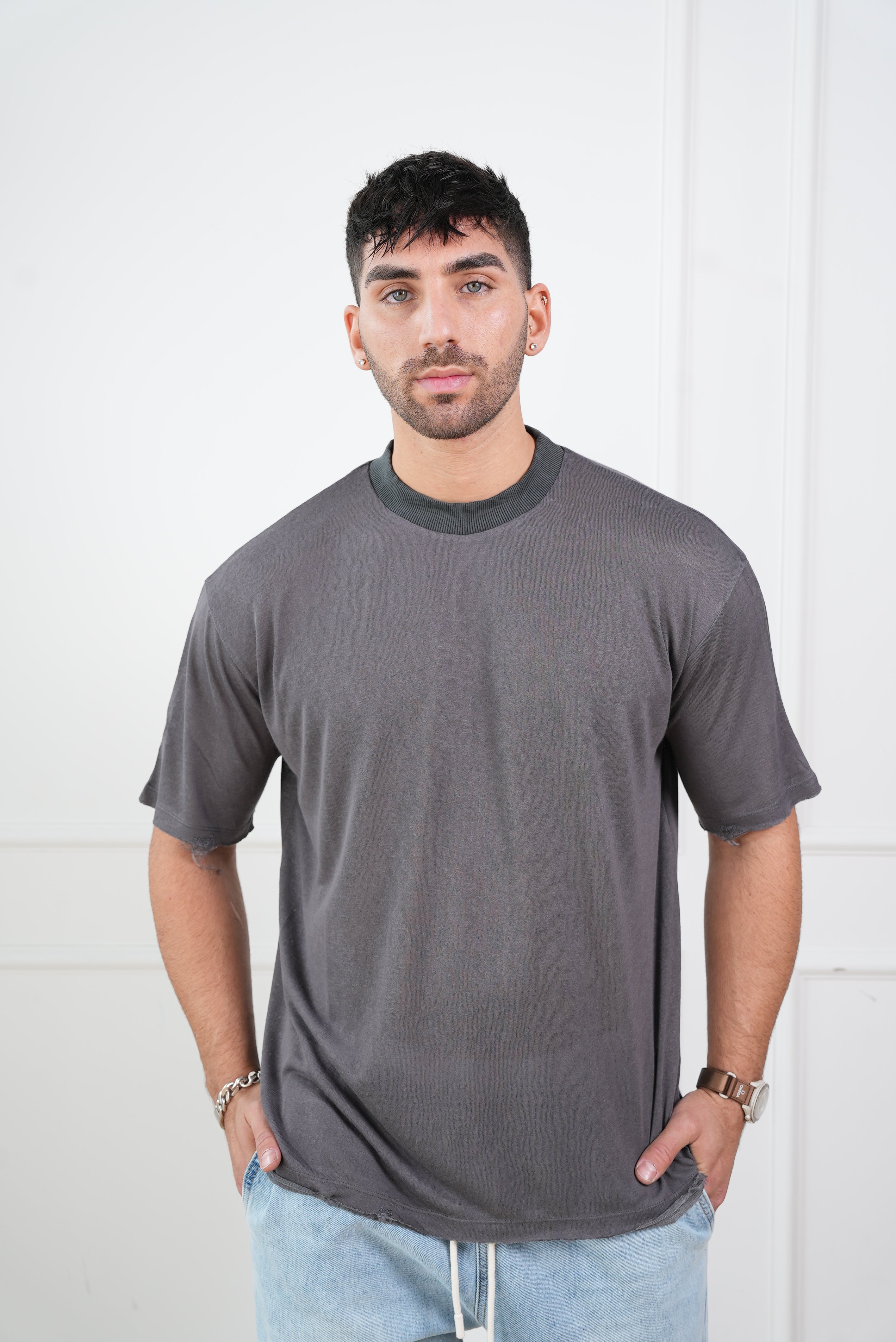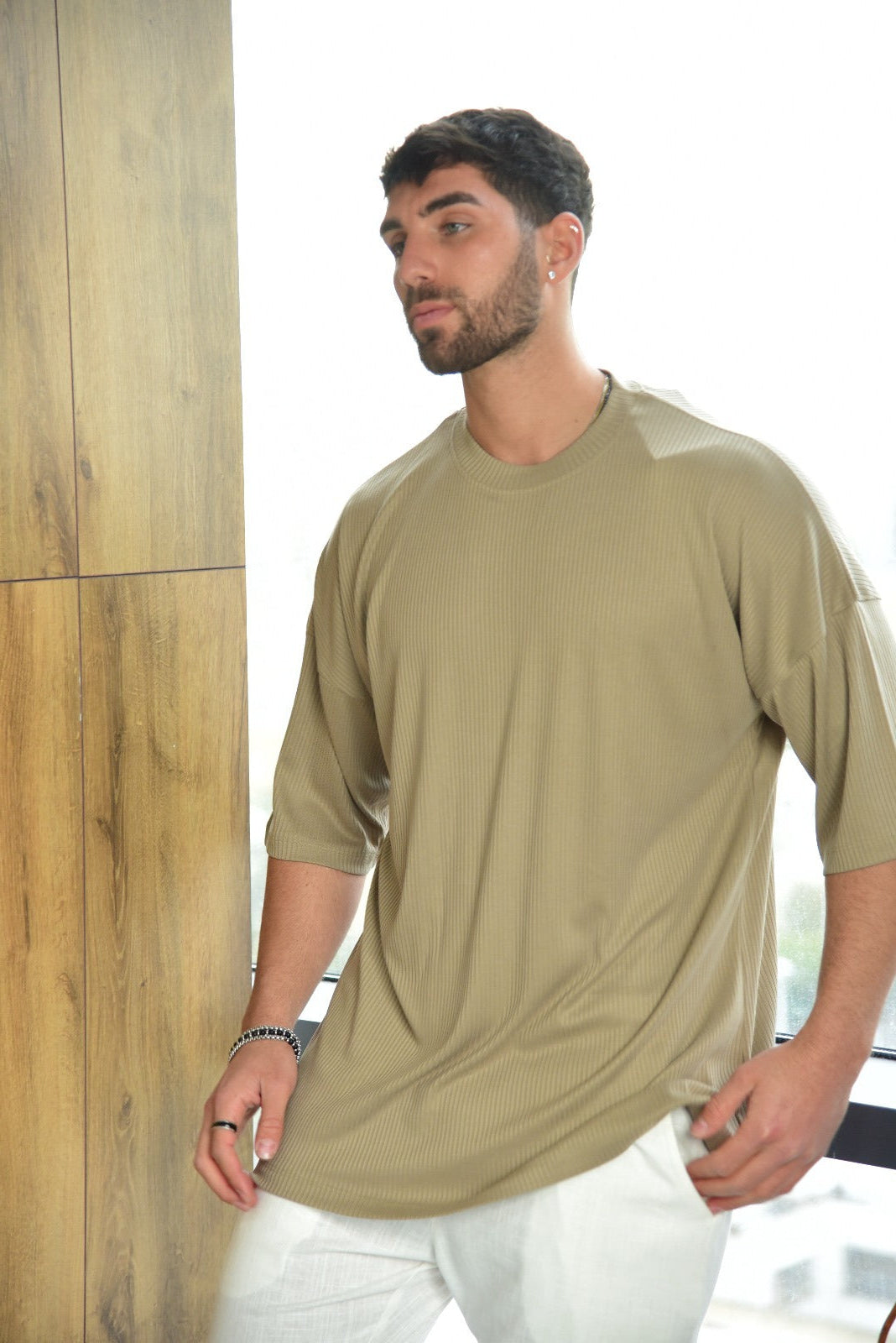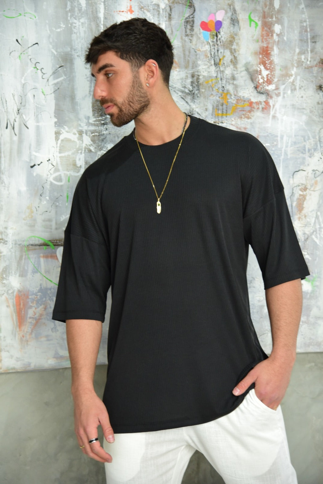 חולצת אוברסייז מעודן שרוול מרפק דפוס