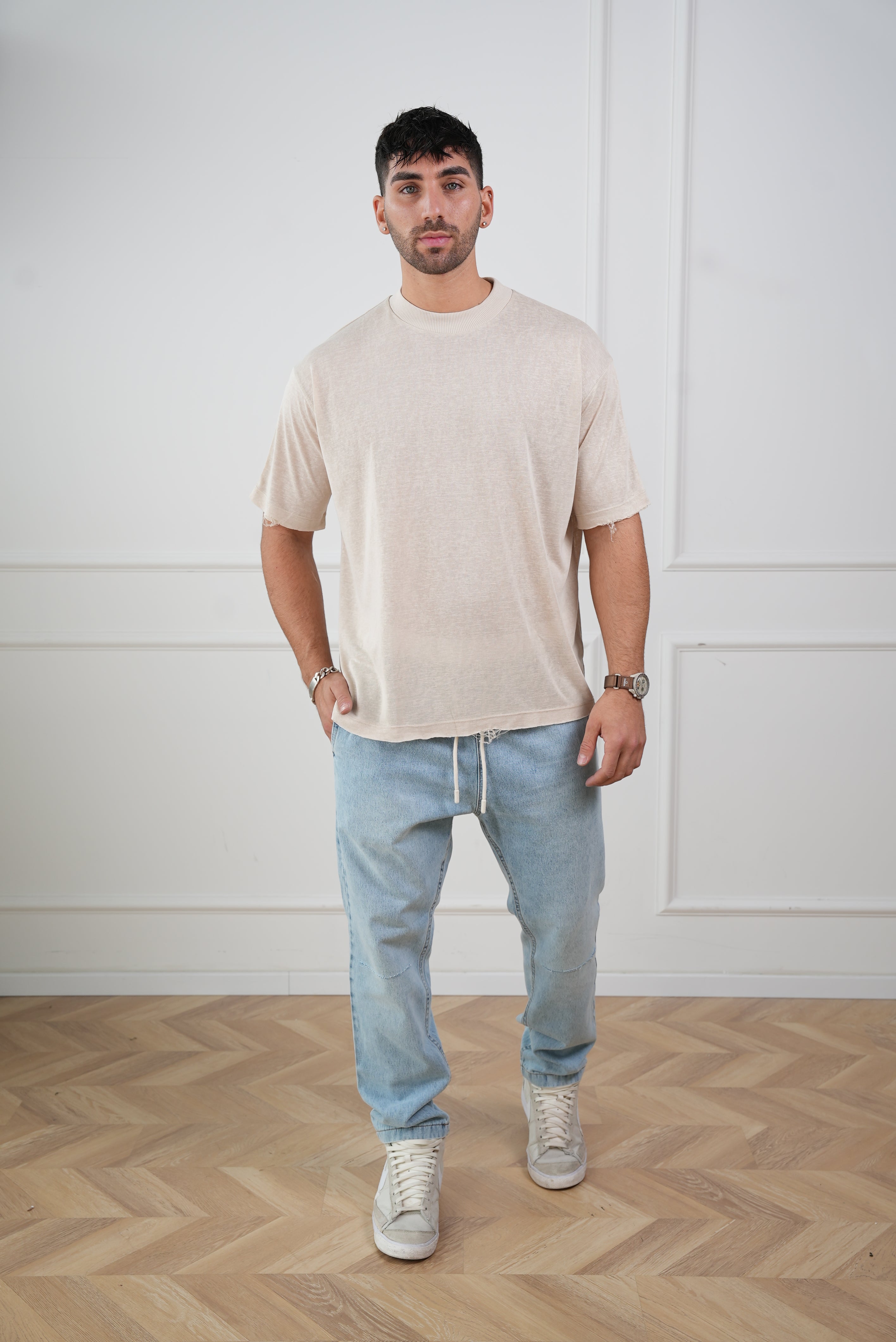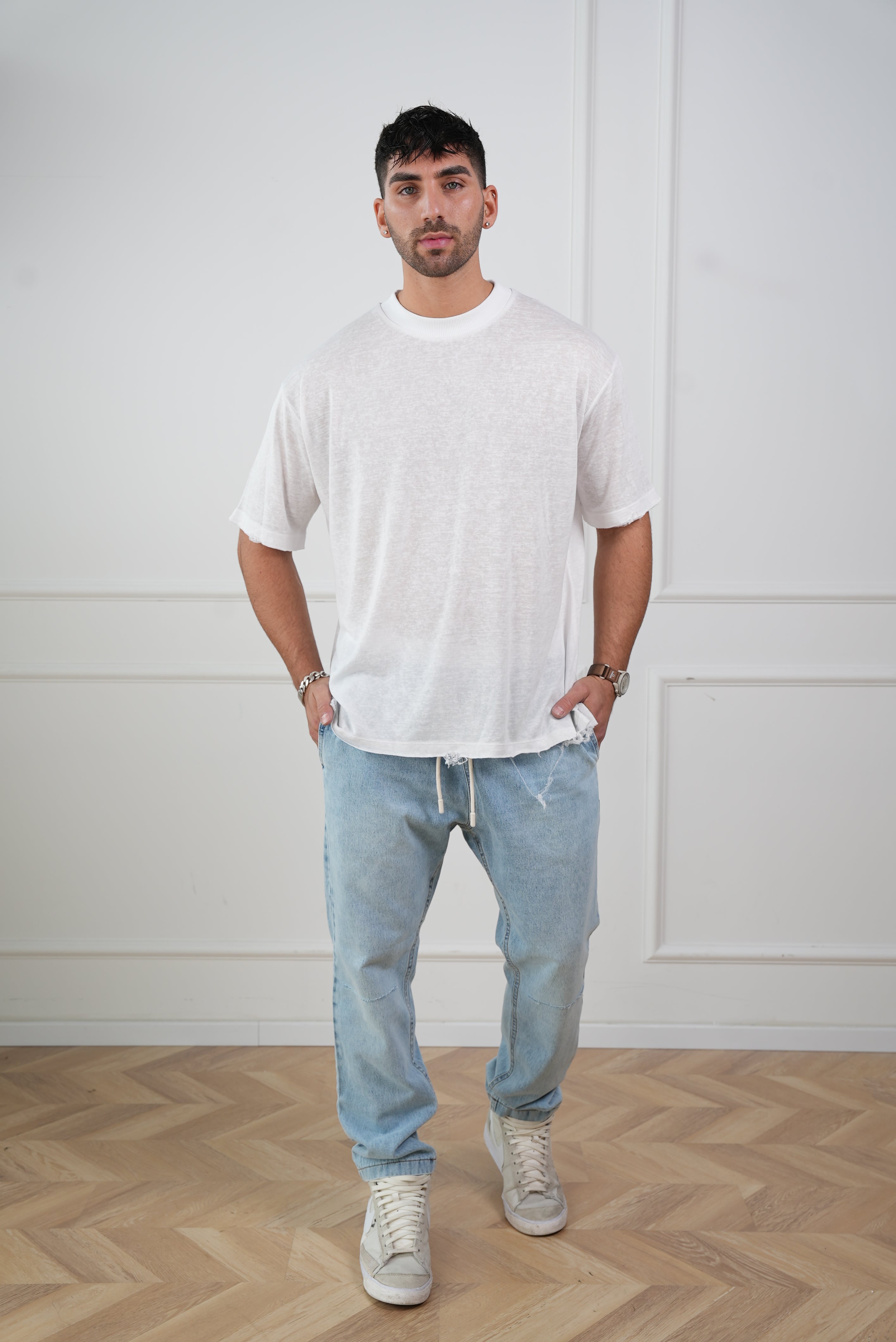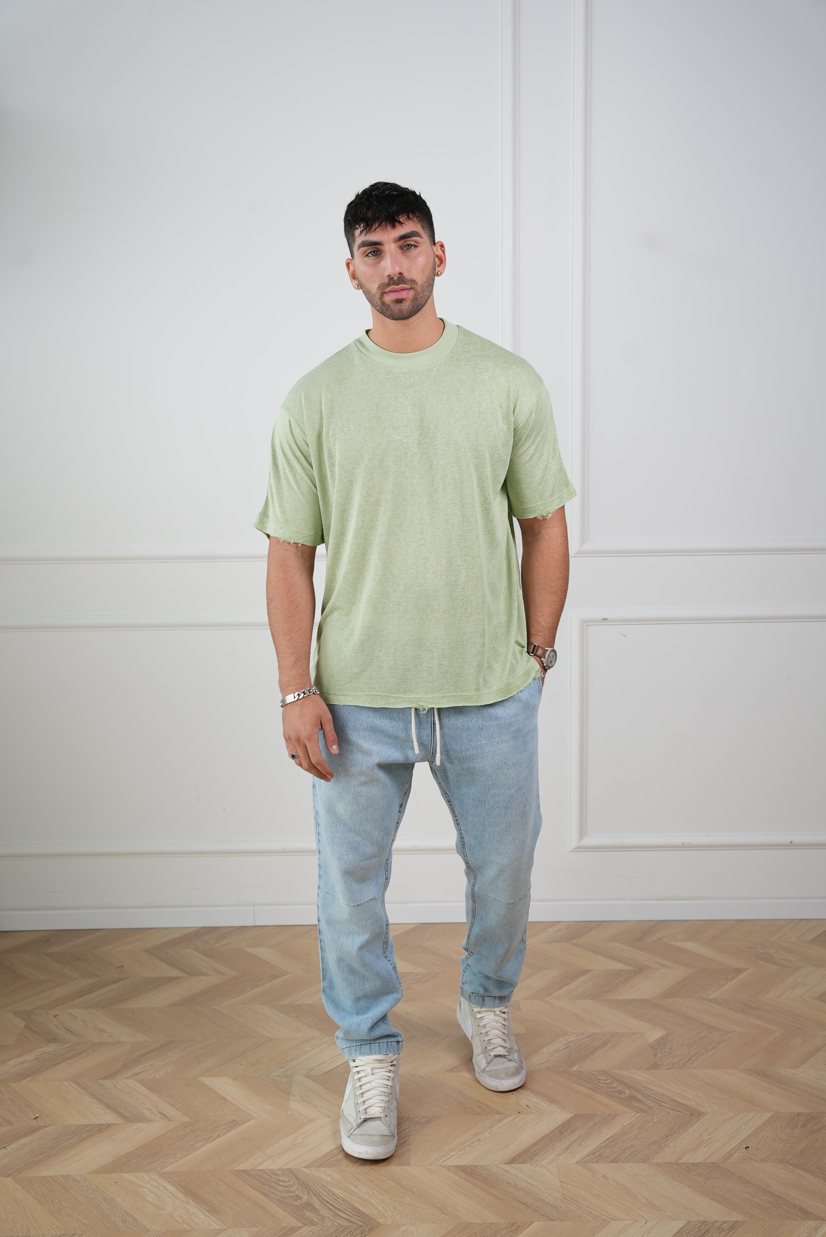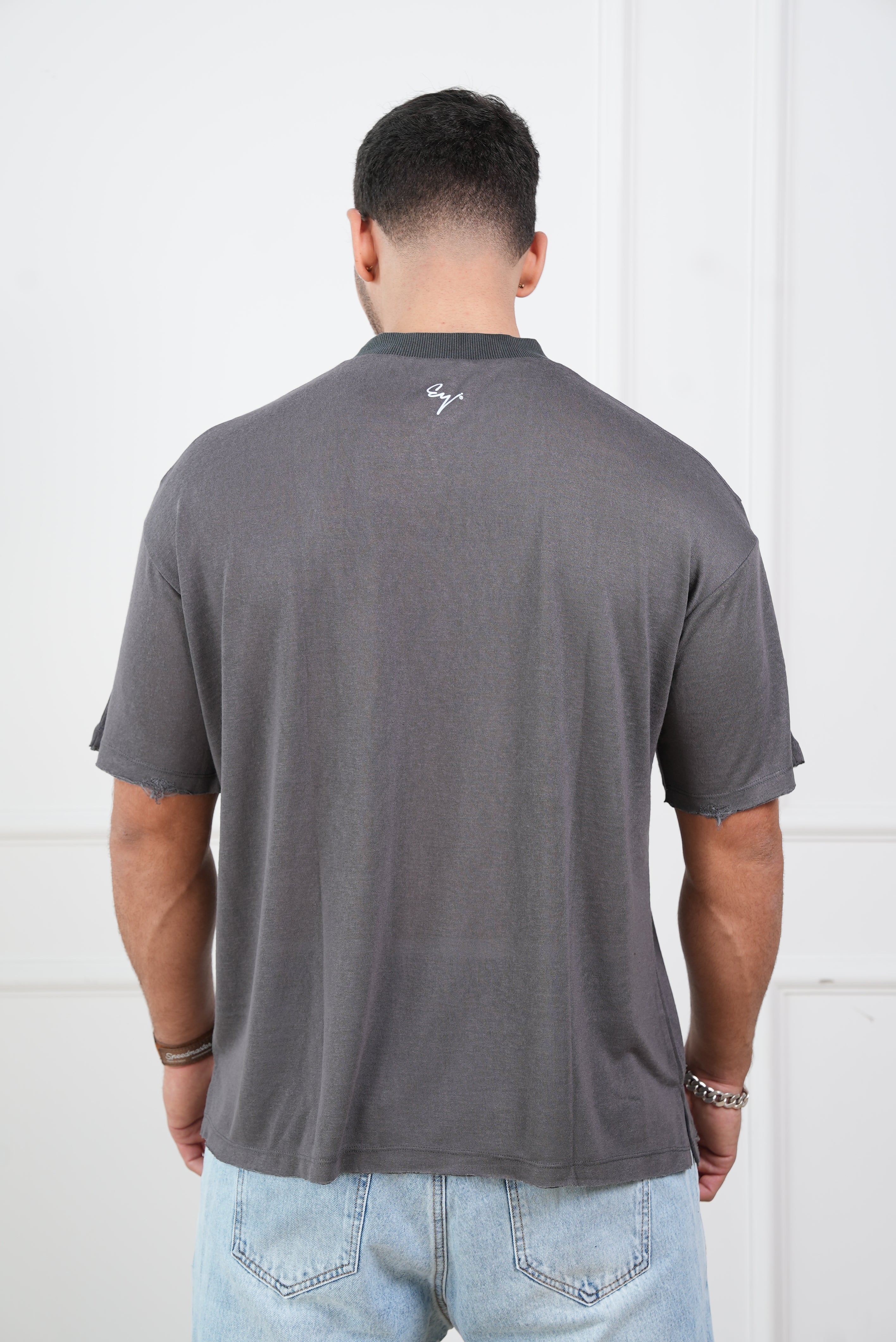 חולצת אוברסייז מעודן שרוול מרפק דפוס