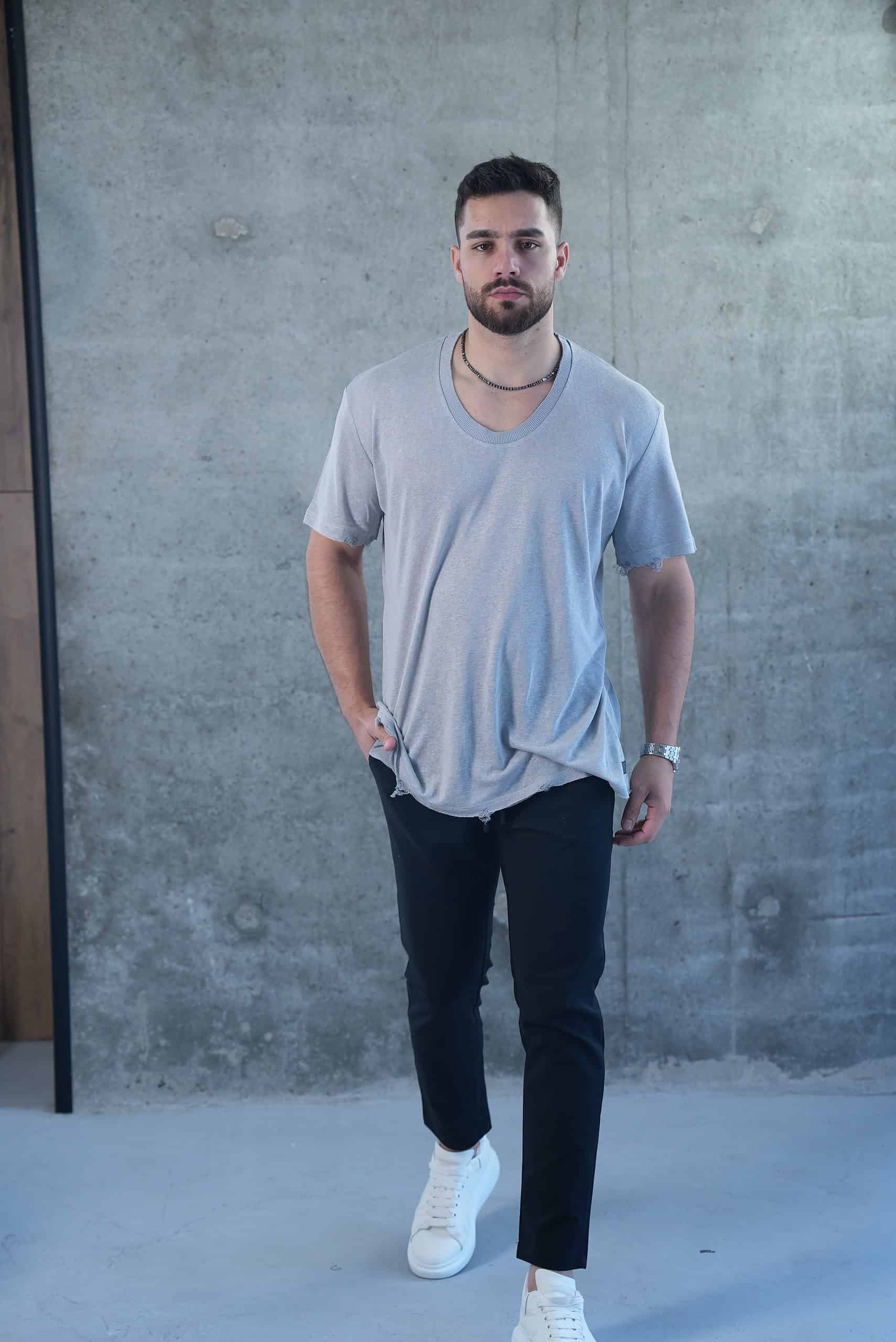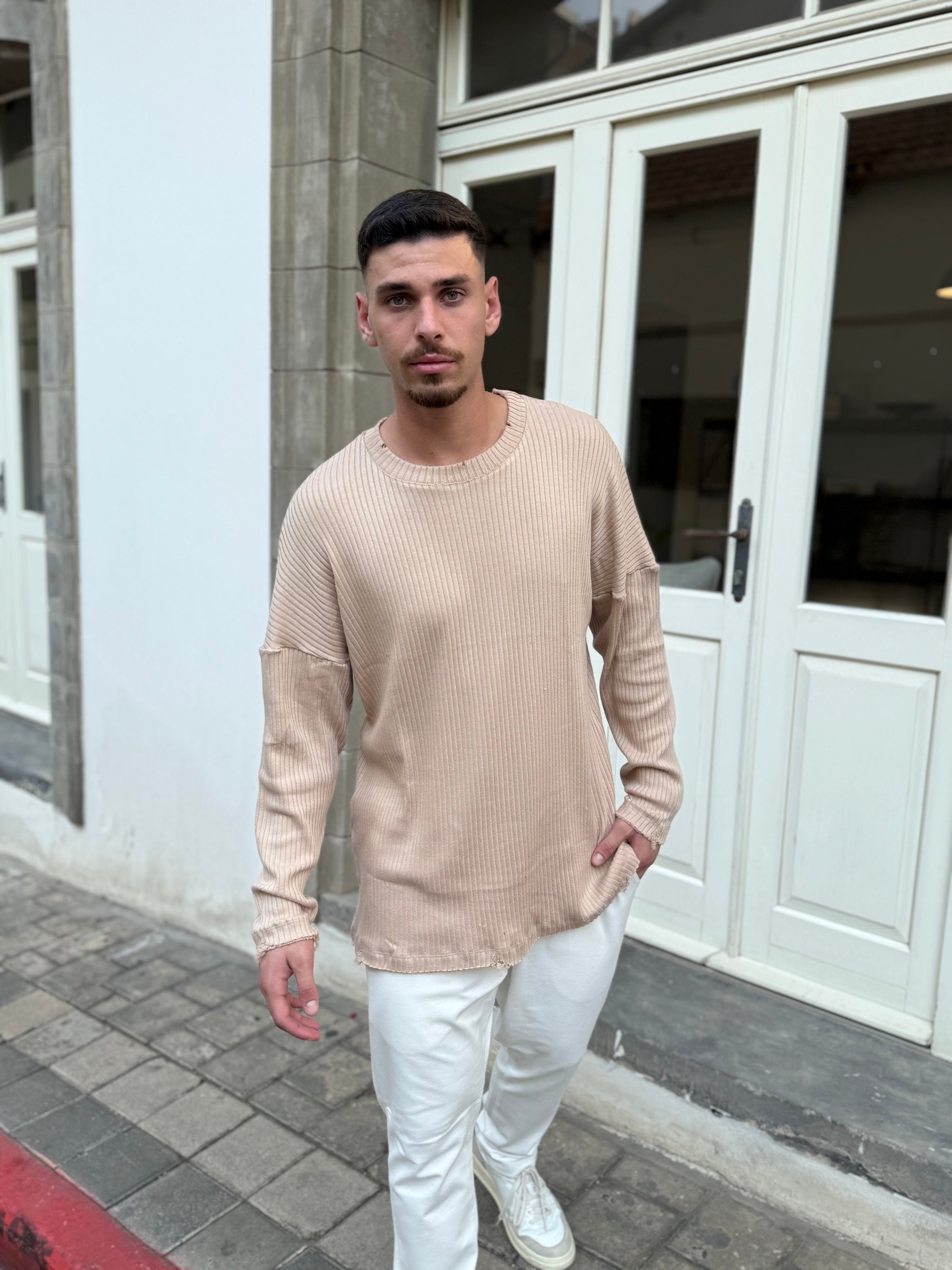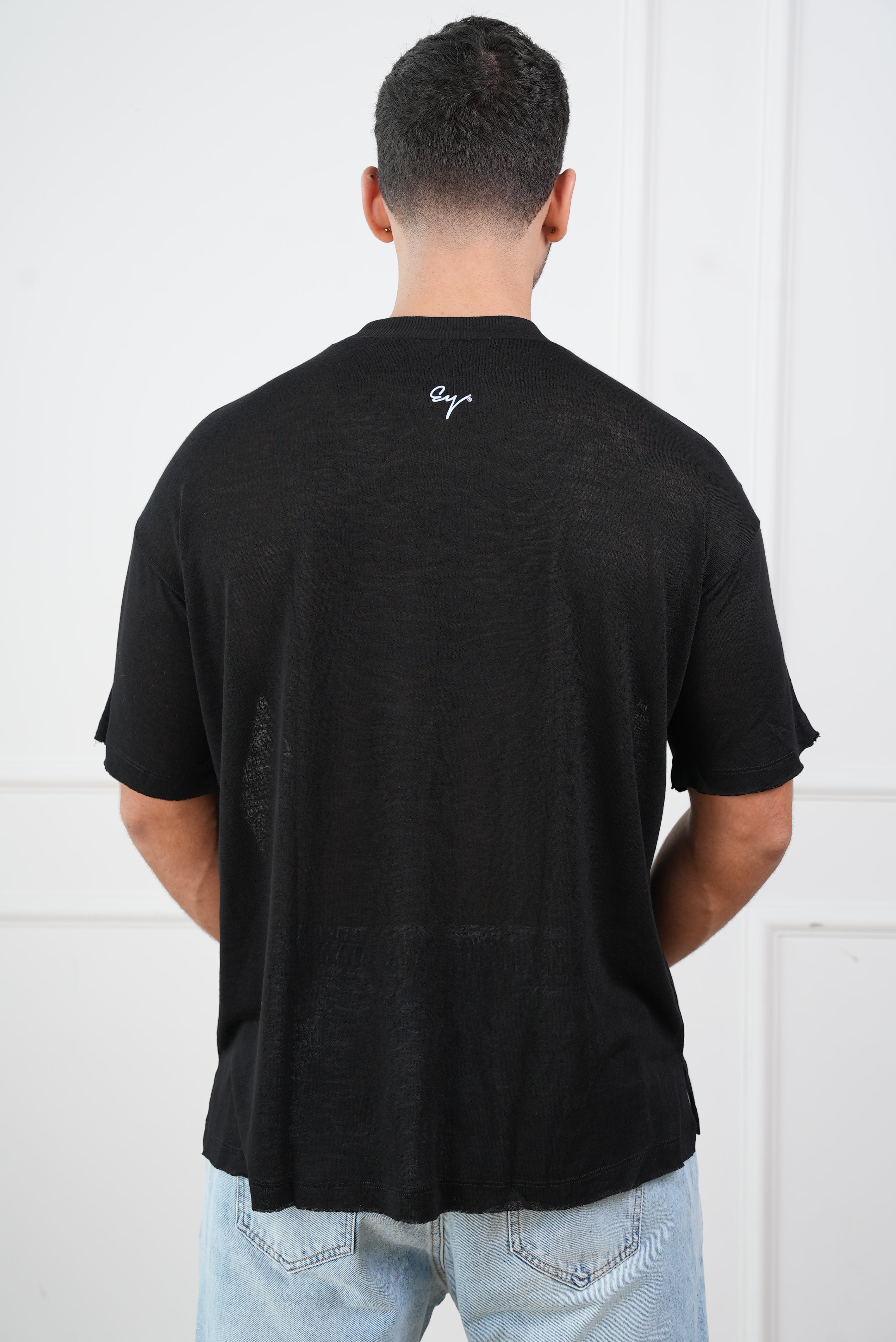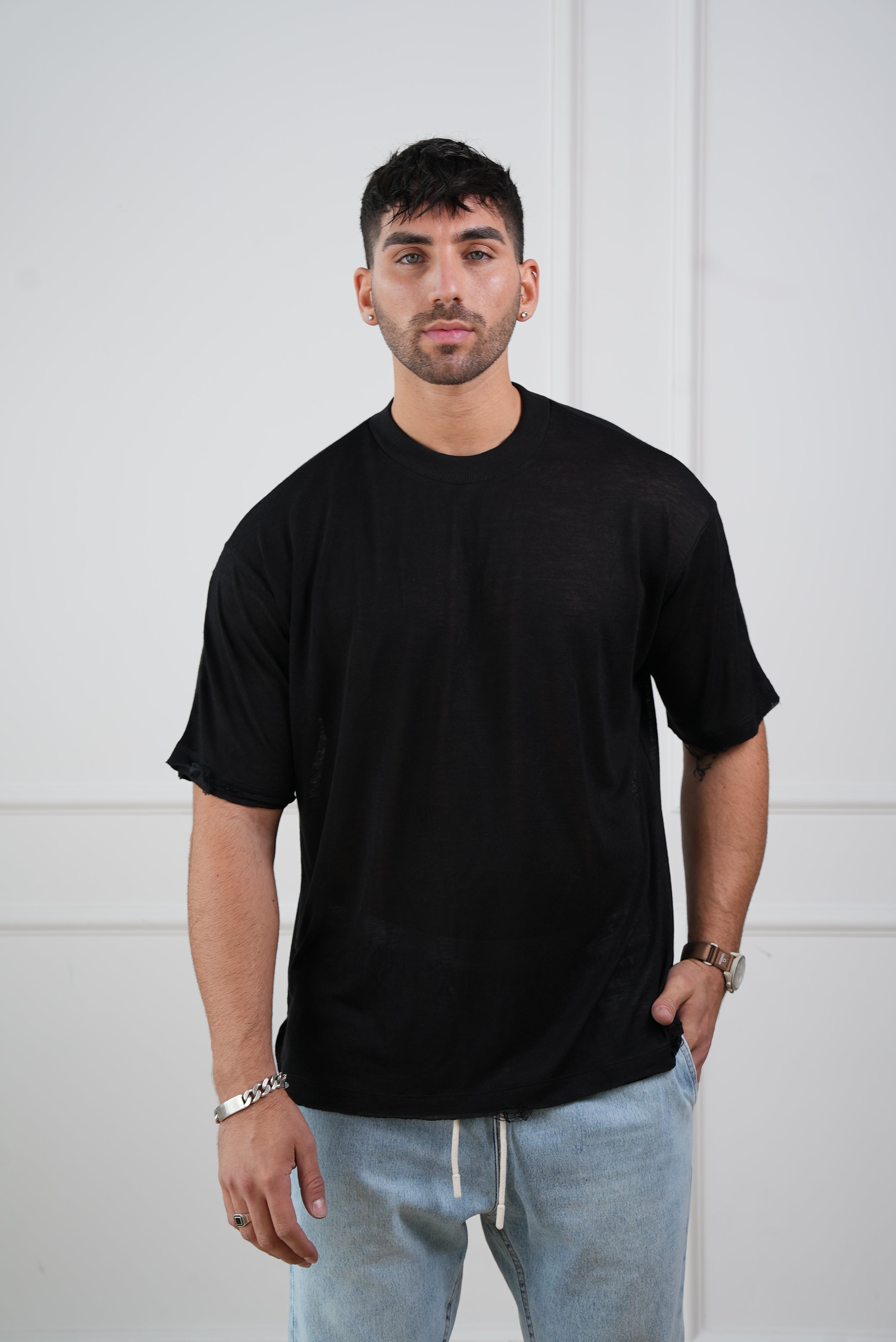 חולצת אוברסייז מעודן שרוול מרפק דפוס