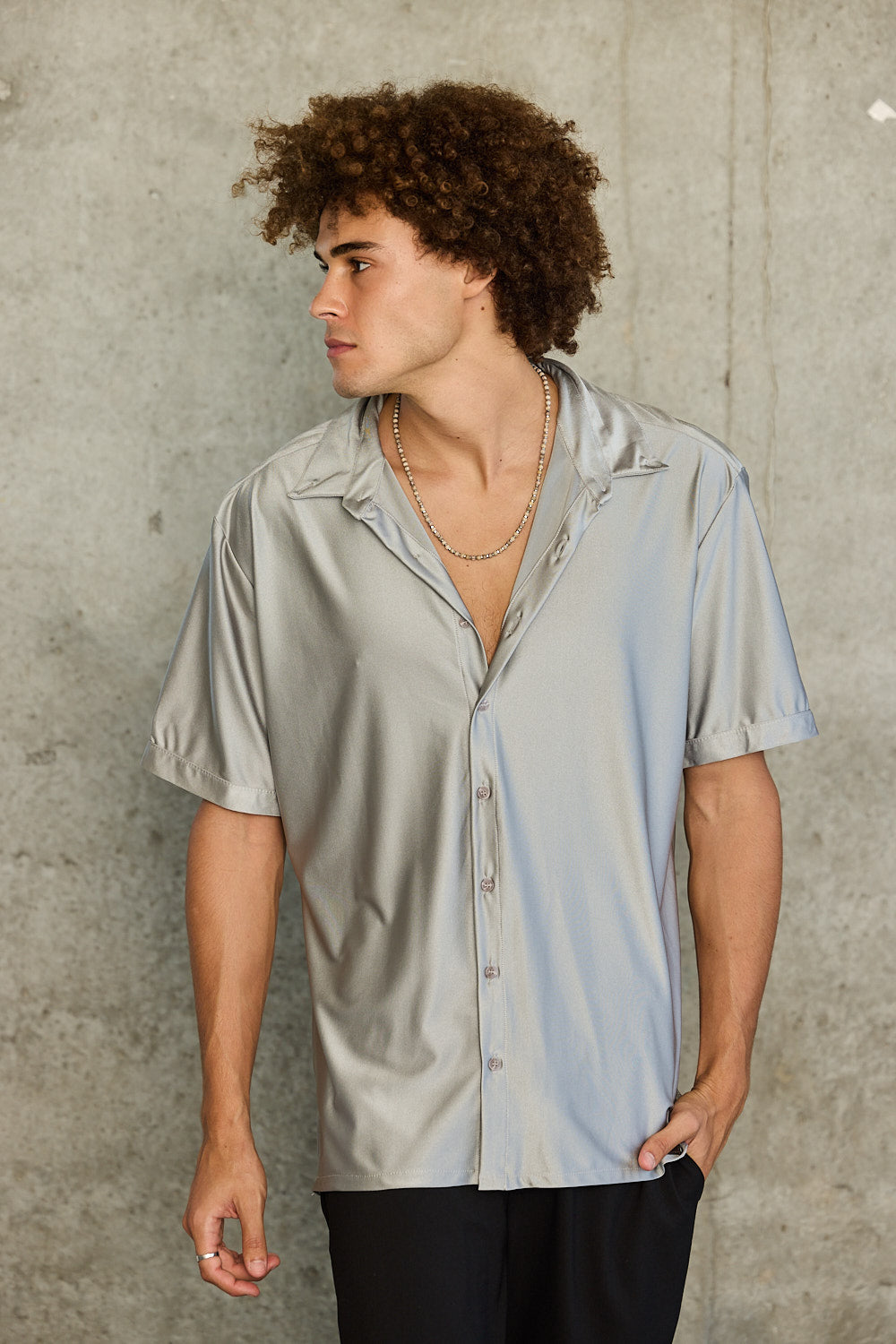 חולצה מכופתרת בעיצוב מודרני ונקי, עשויה מבד לייקרה איכותי בגימור מבריק – נמתחת, נושמת ונוחה במיוחד. הבד בהשראת בגדי ים מעניק לחולצה טאץ’ ייחודי של ברק, אלגנטיות וספורטיביות בו זמנית.
