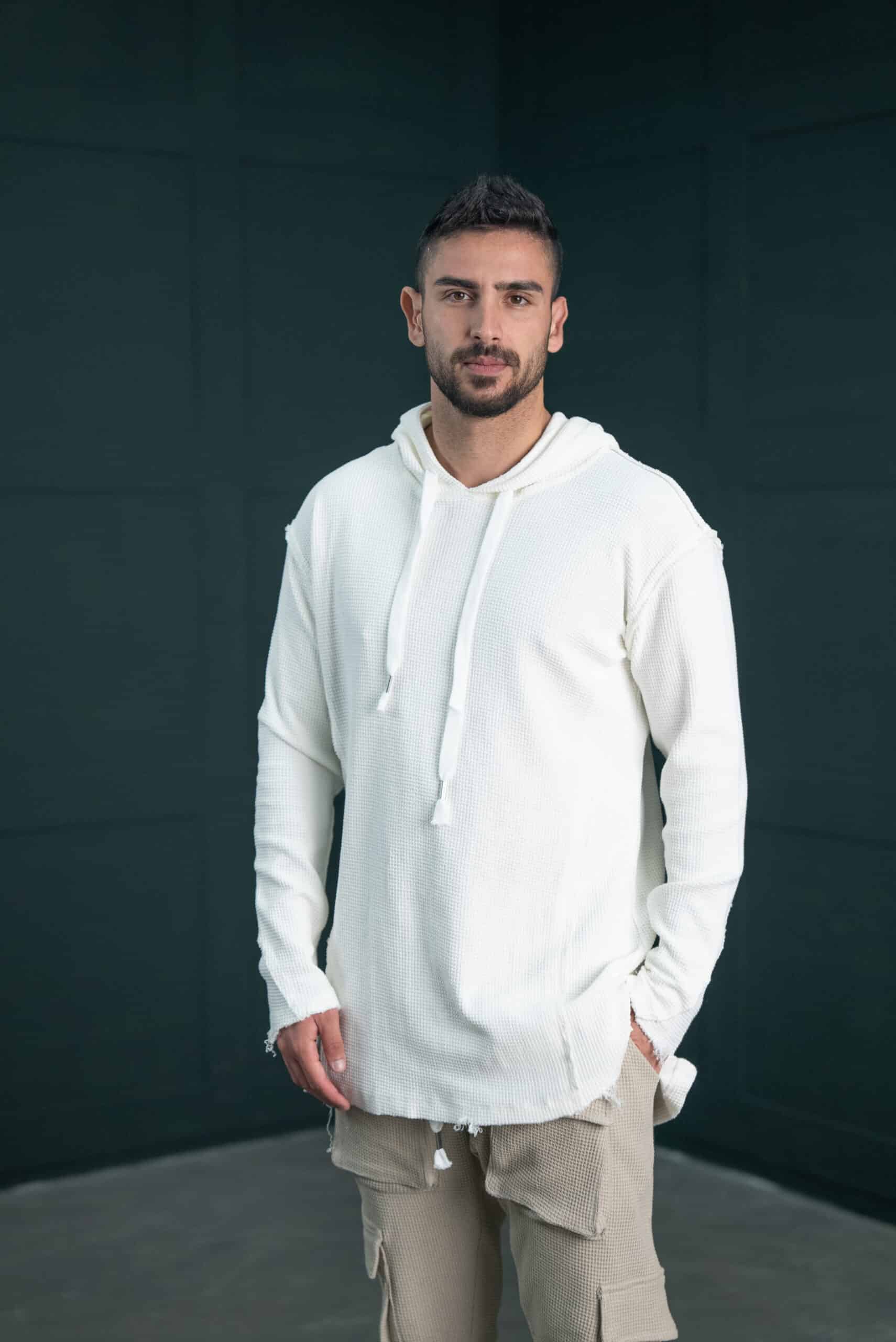 קפוצ’ון מבד וופל 100% כותנה איכותית , עם שרוך חולצה נוחה עם סטייל פגז