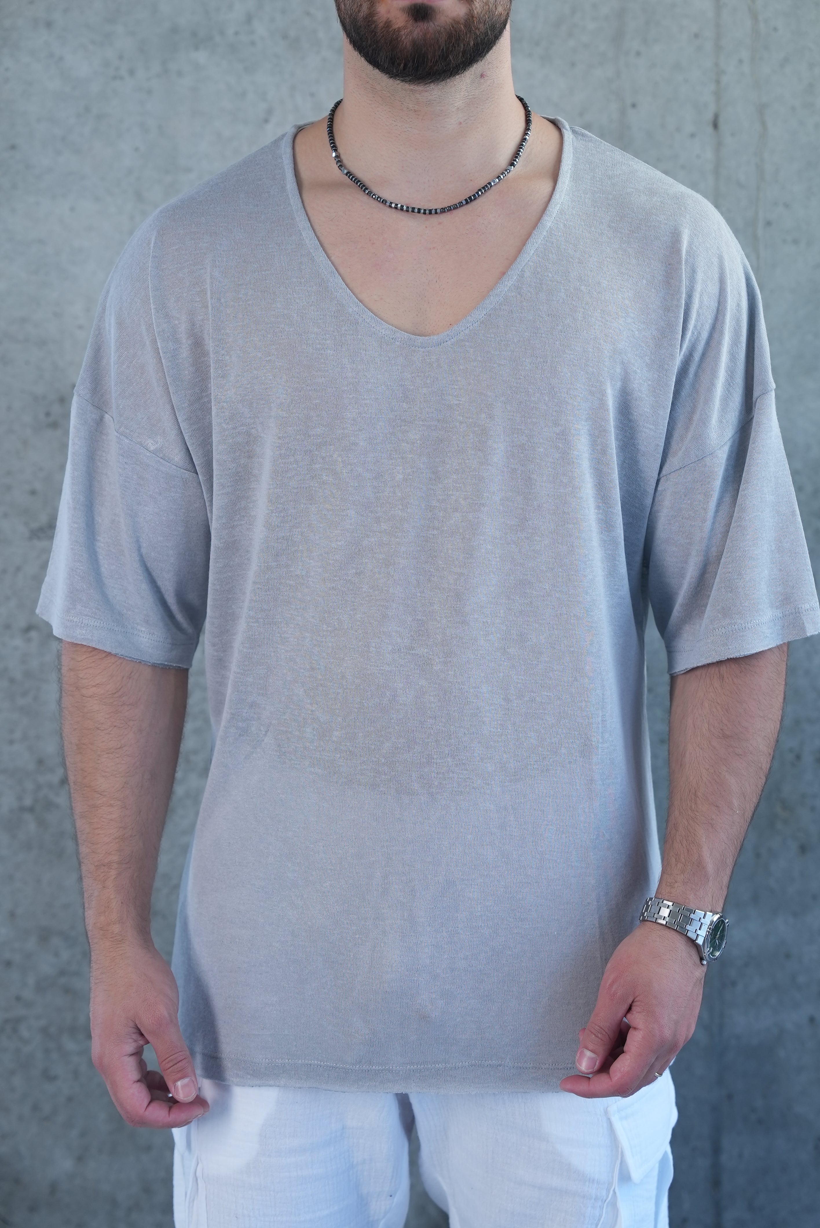 החולצה שגורמת ללוק שלך להיראות מתוחכם אבל נינוח – בדיוק כמו שצריך. חולצת גברים בגזרת אוברסייז מחמיאה, עם צווארון עגול פתוח וטקסטורת פשתן סלאב טבעית שנותנת עומק ועניין. הבד נושם, נעים וקליל – מושלם לעונה החמה ולשילובים קז’ואליים עם טוויסט.