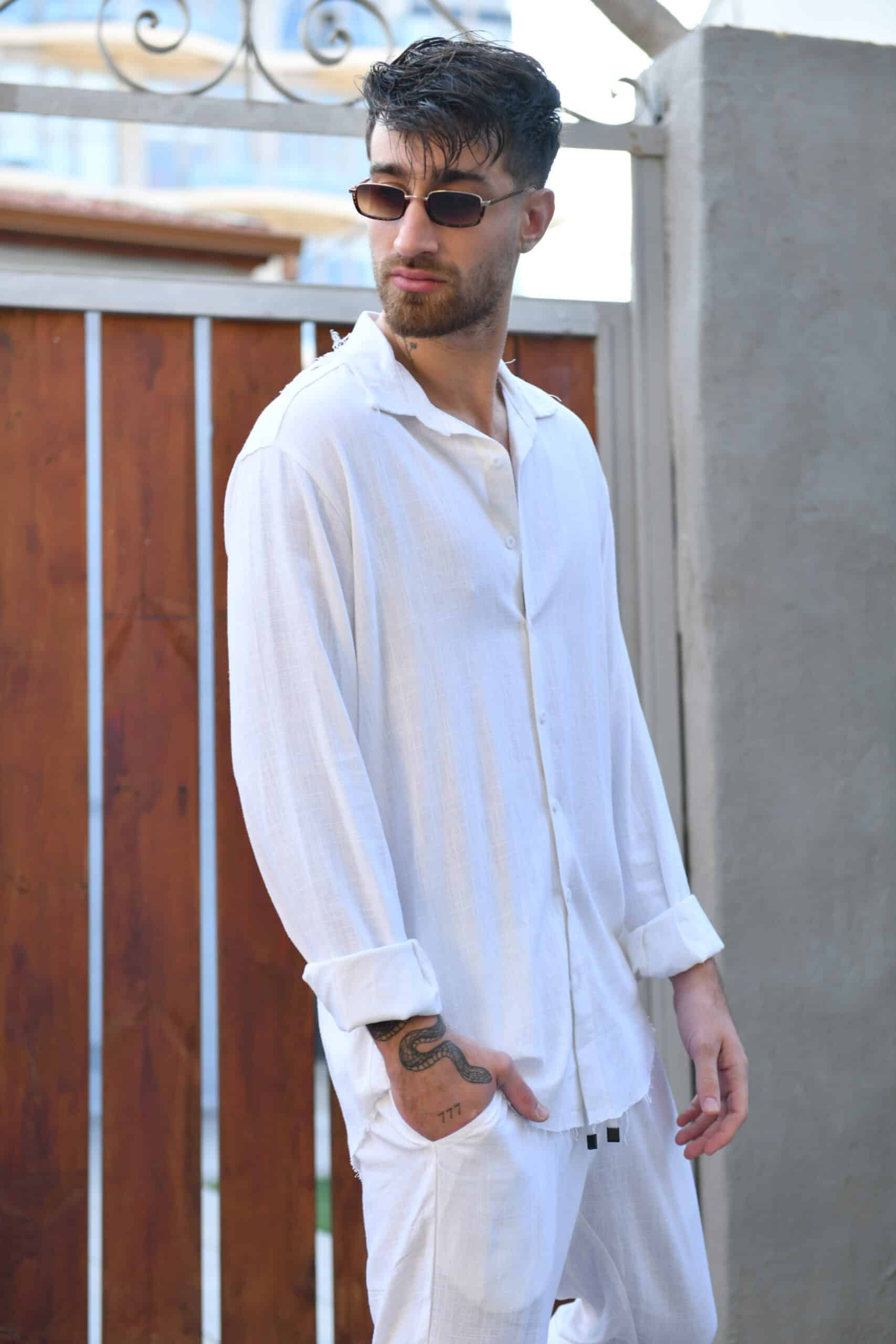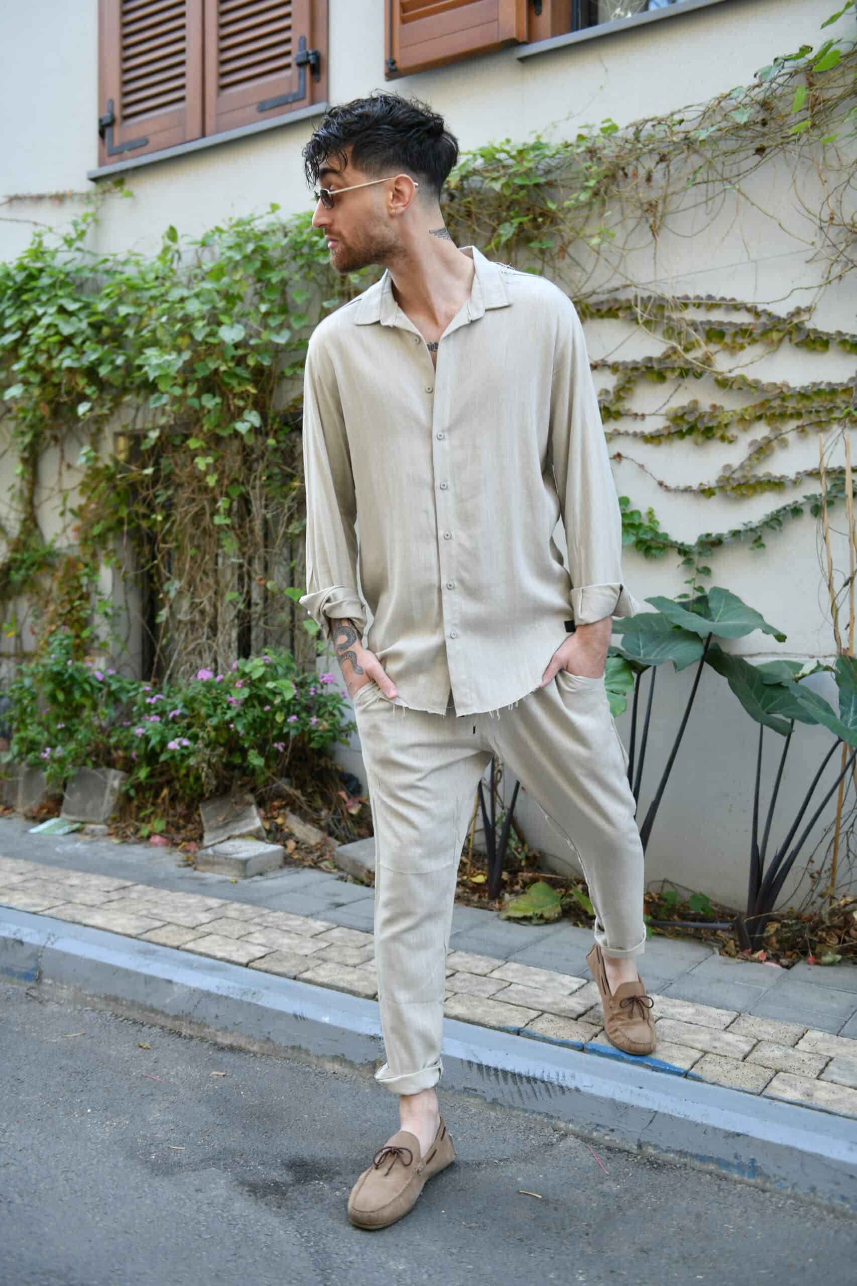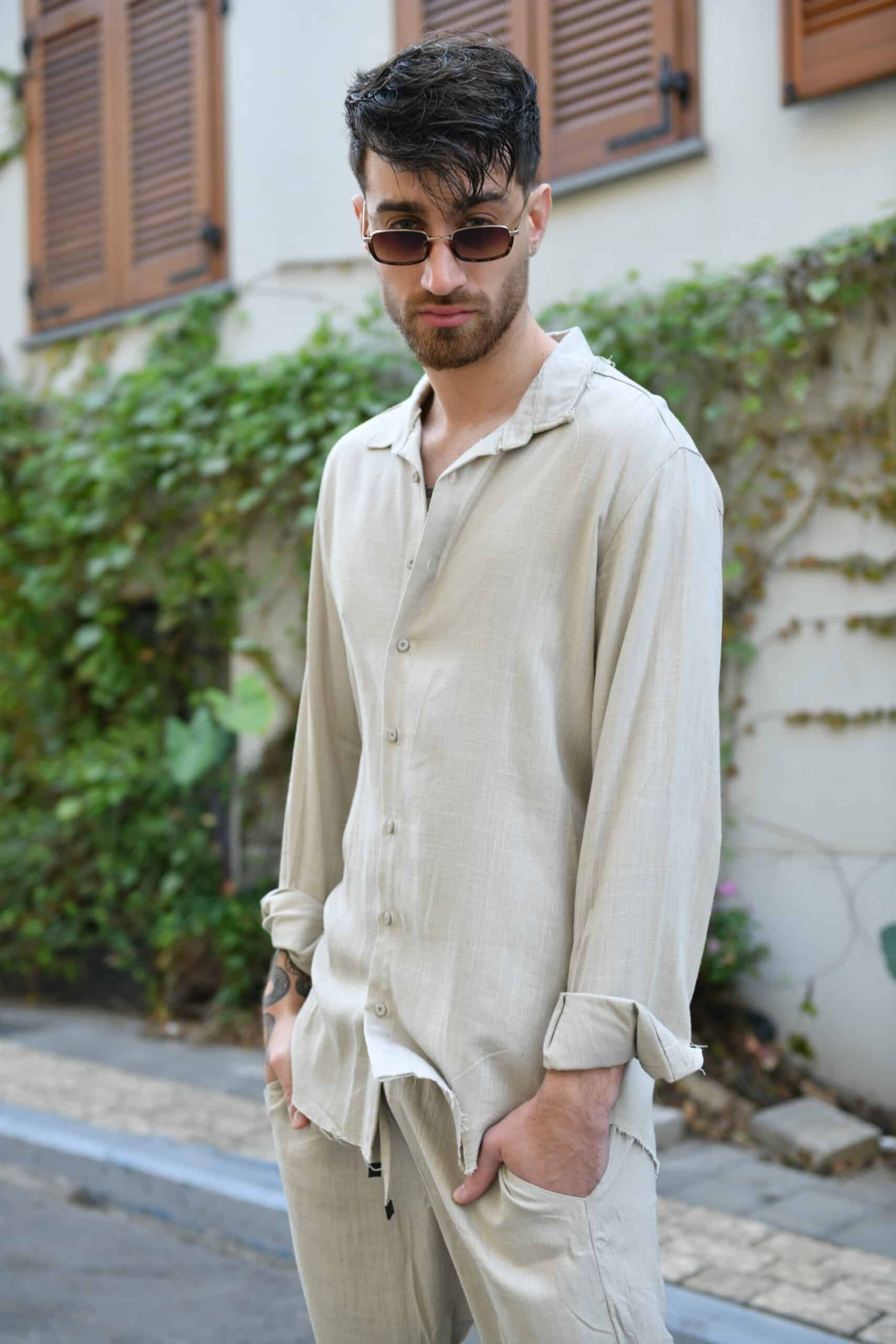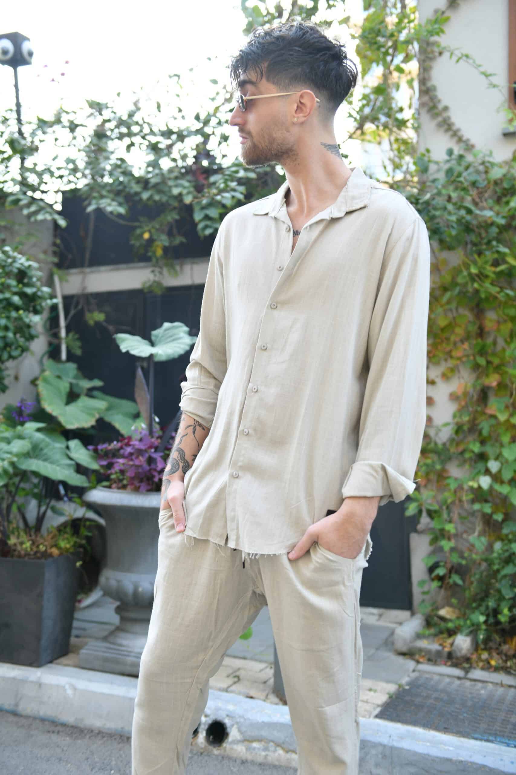 חולצת פשתן מכופתרת
