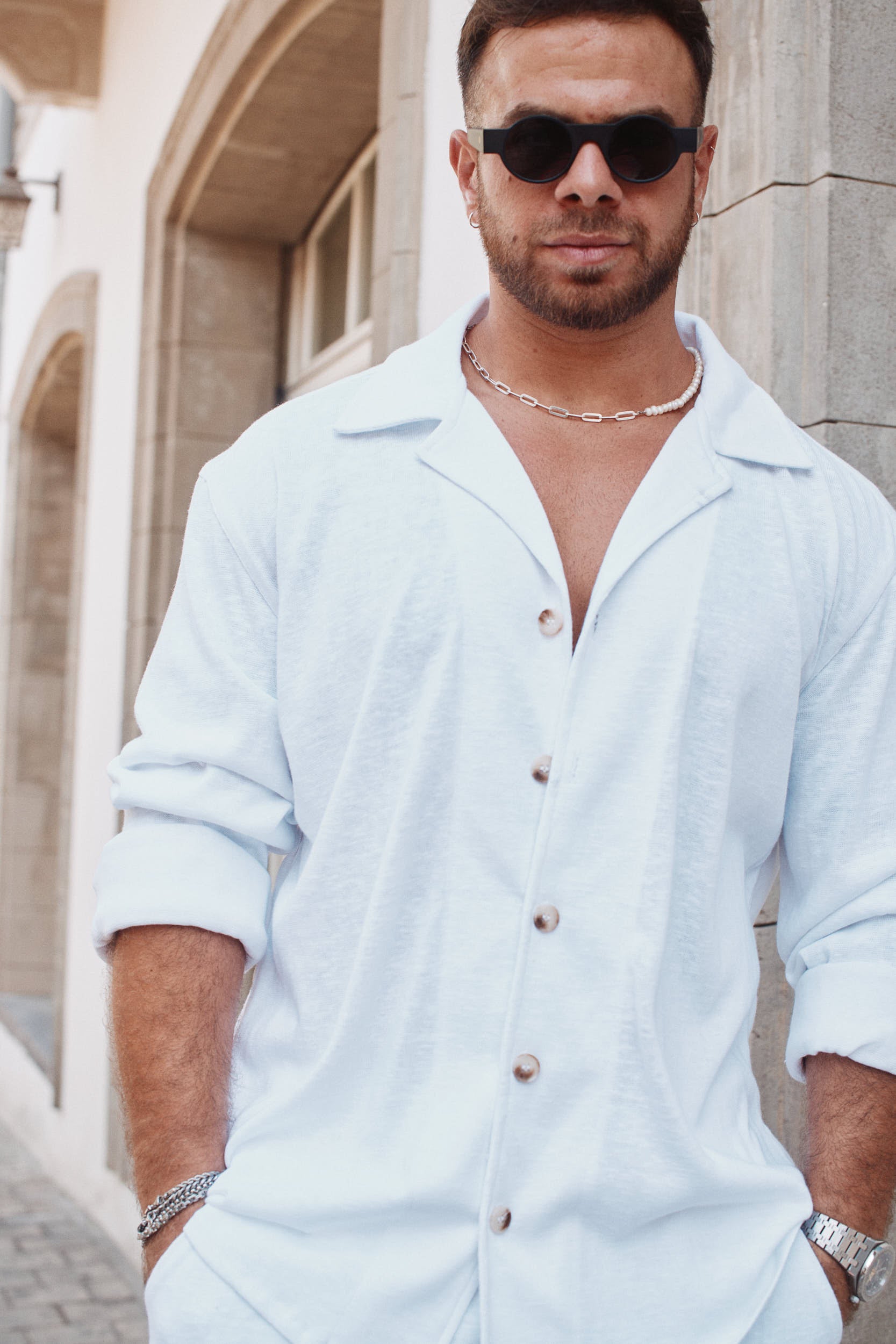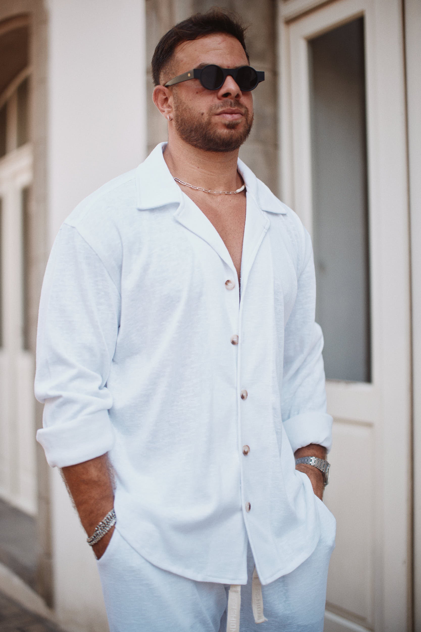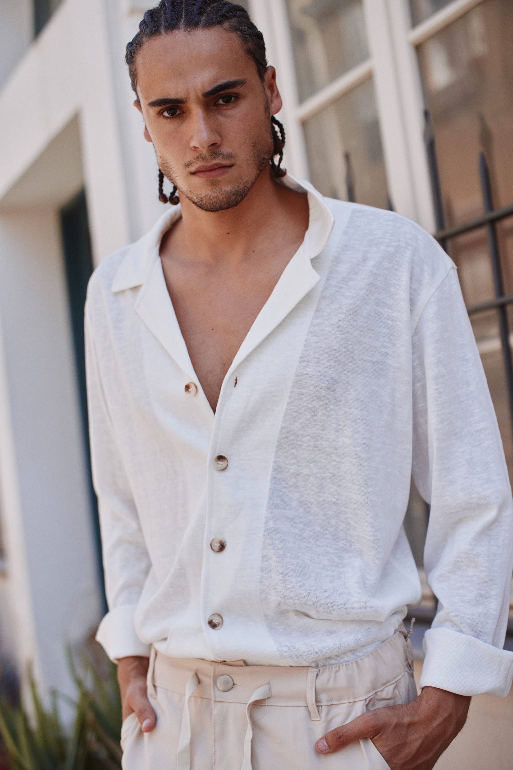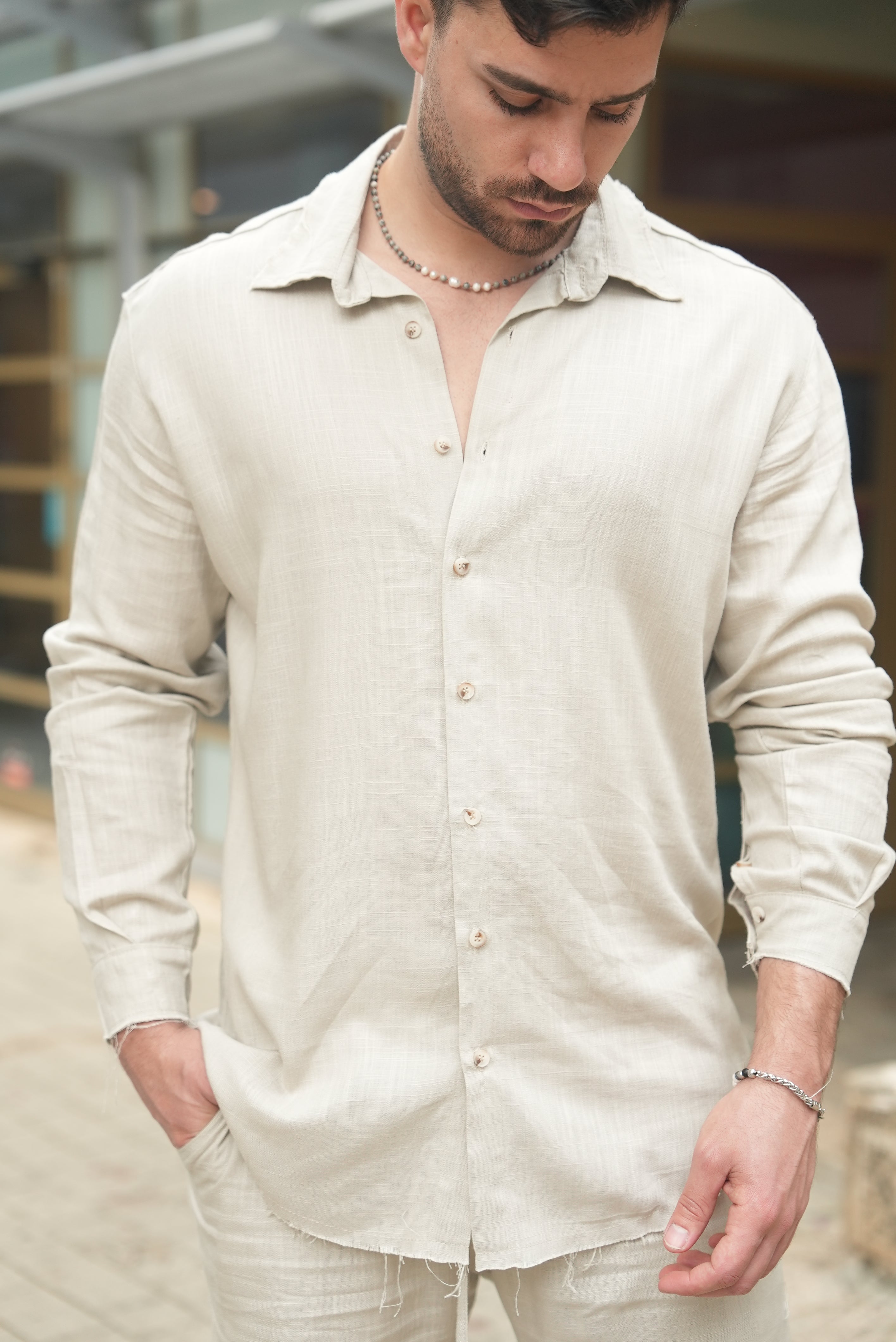 חולצת פשתן מכופתרת