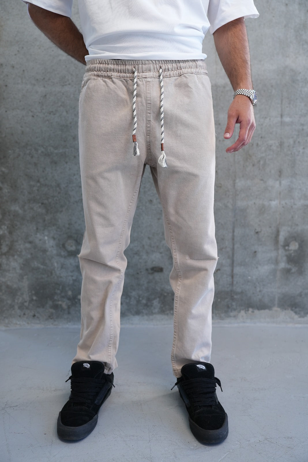 מכנס קל ונושם לגבר, בצבע מוקה או לבן טרי, עם שרוך במותן להתאמה מושלמת ונוחות לאורך כל היום. הגזרה המחמיאה מדגישה את הקווים הטבעיים ומציעה מראה נקי, מודרני ומתאים לכל סגנון קז’ואל.
