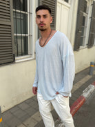 חולצת אוברסייז רחבה מאוד מבד כותנה שורות