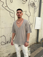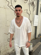 חולצה וי עמוק , אוברסייז מבד פשתן עבה