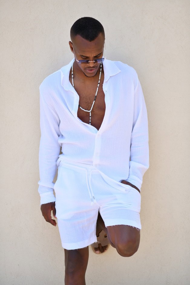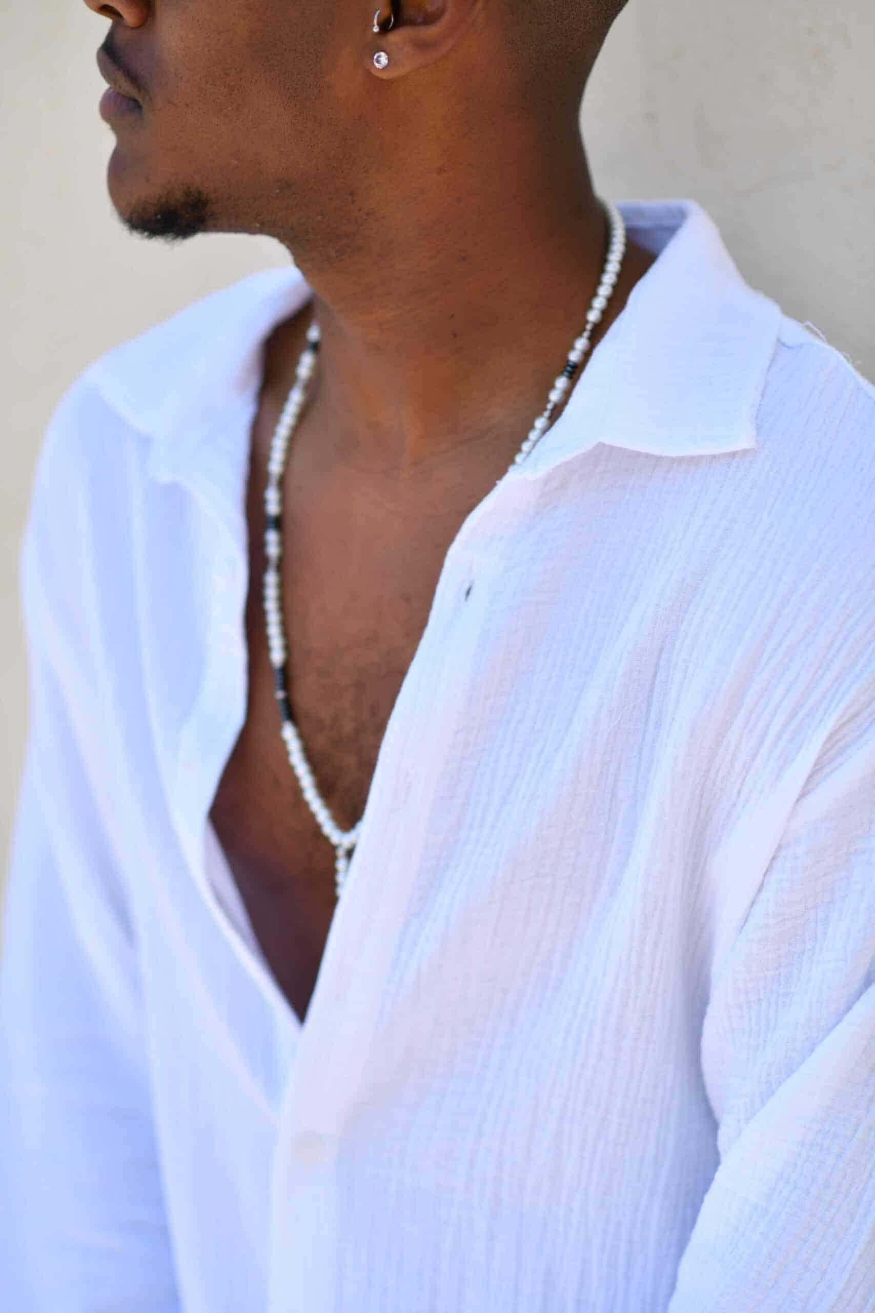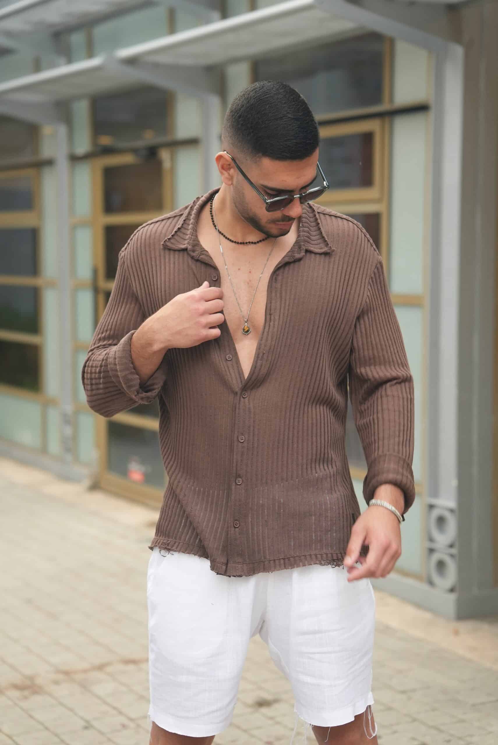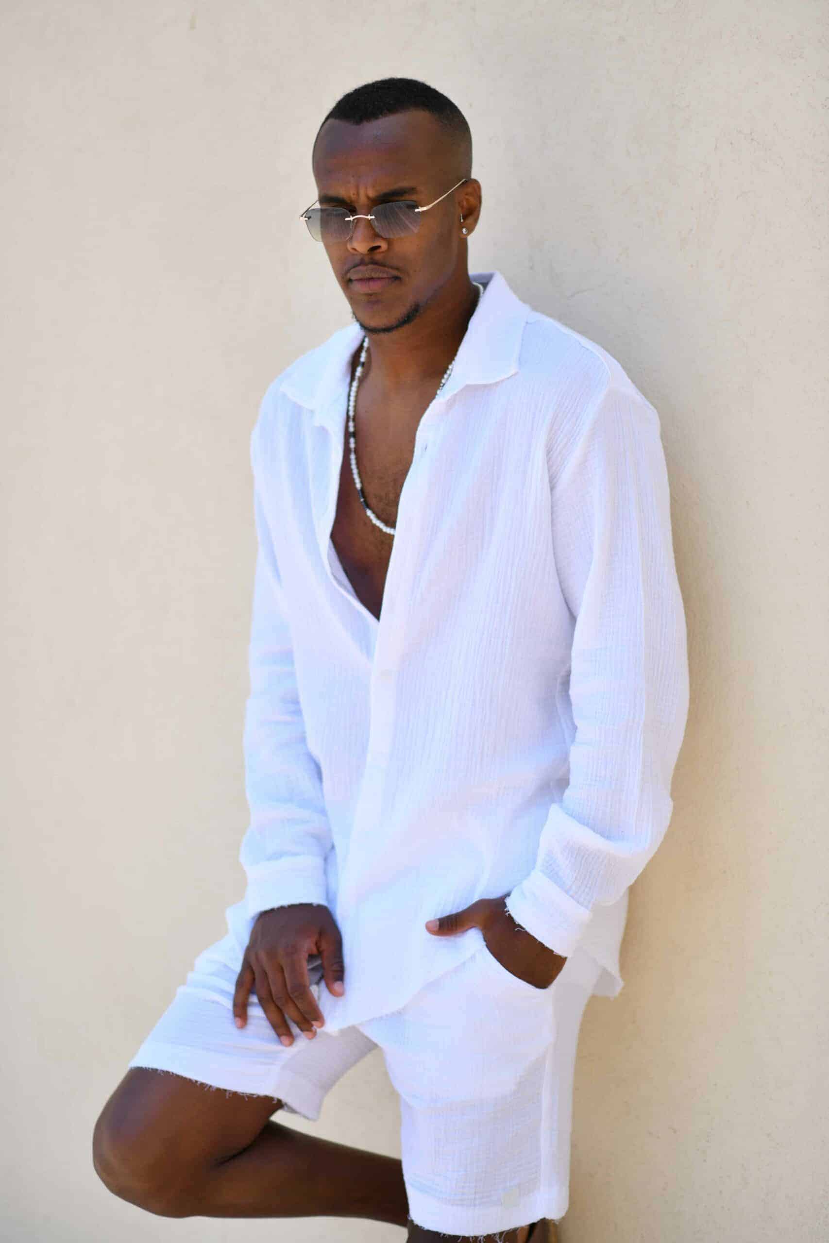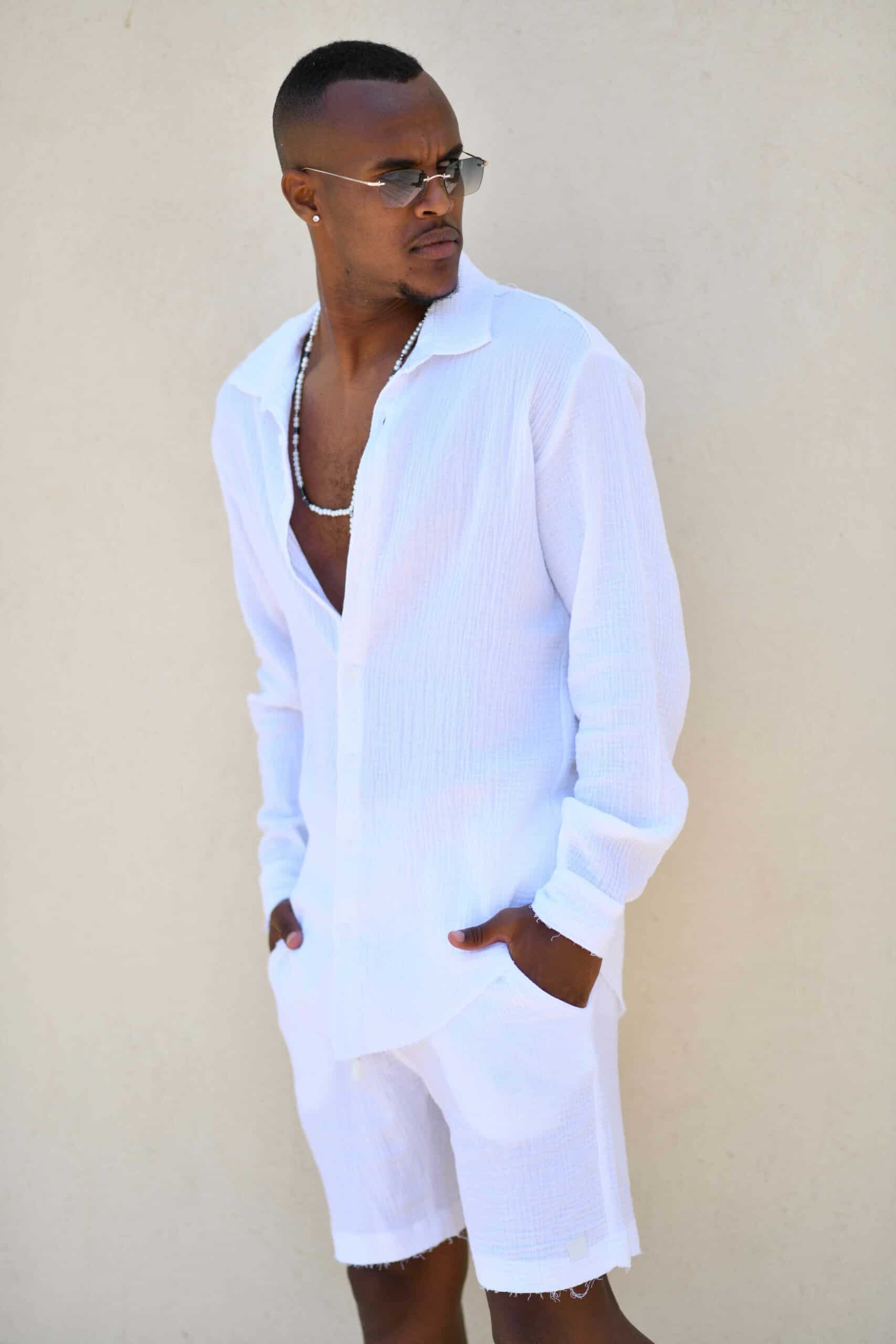 חולצת סאנטוריני מכופתרת שרוול ארוך