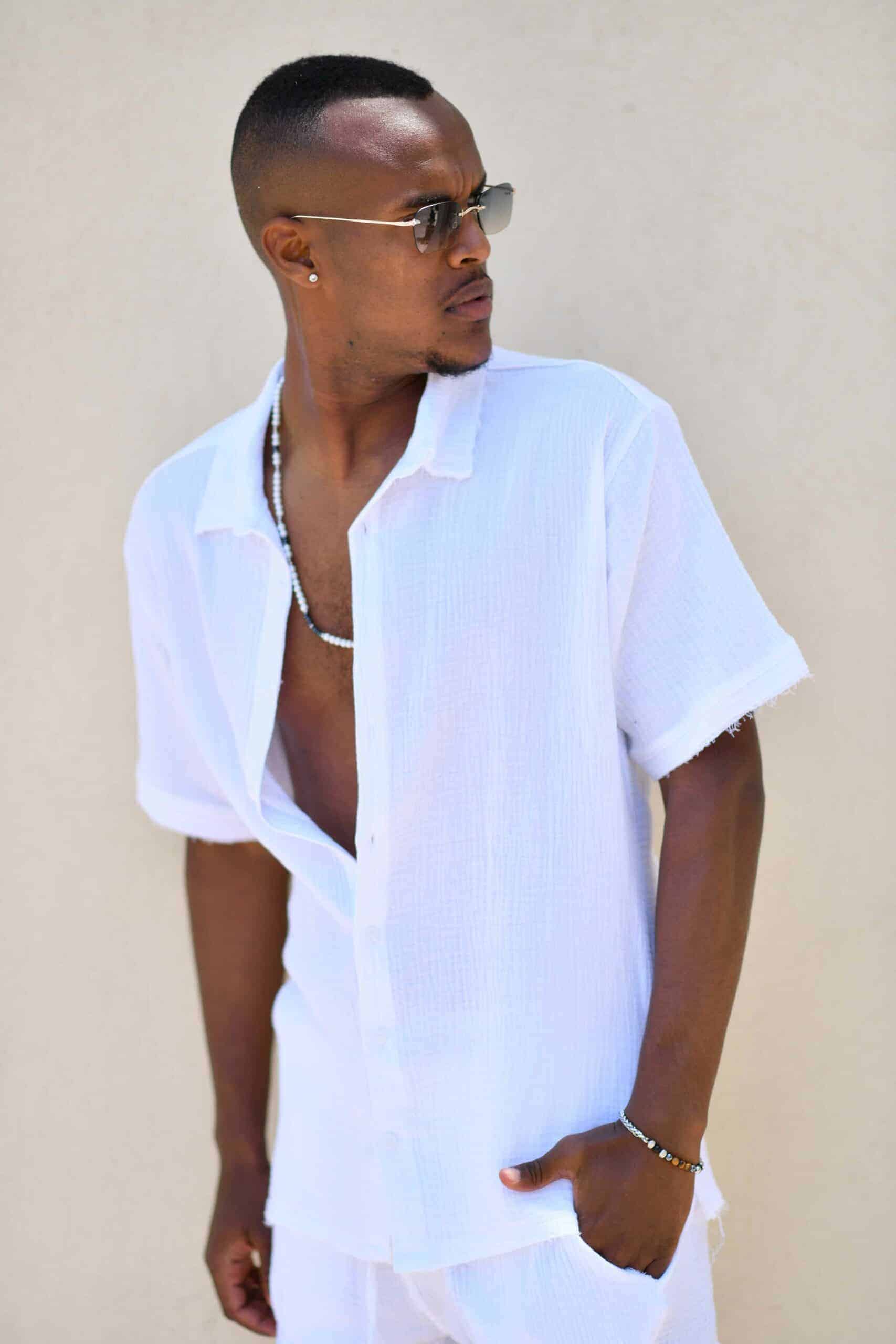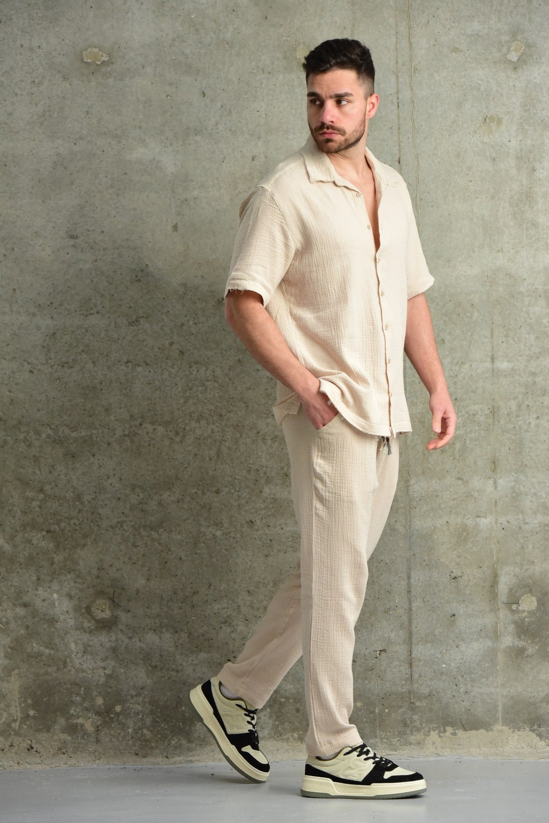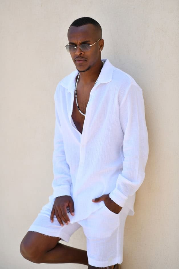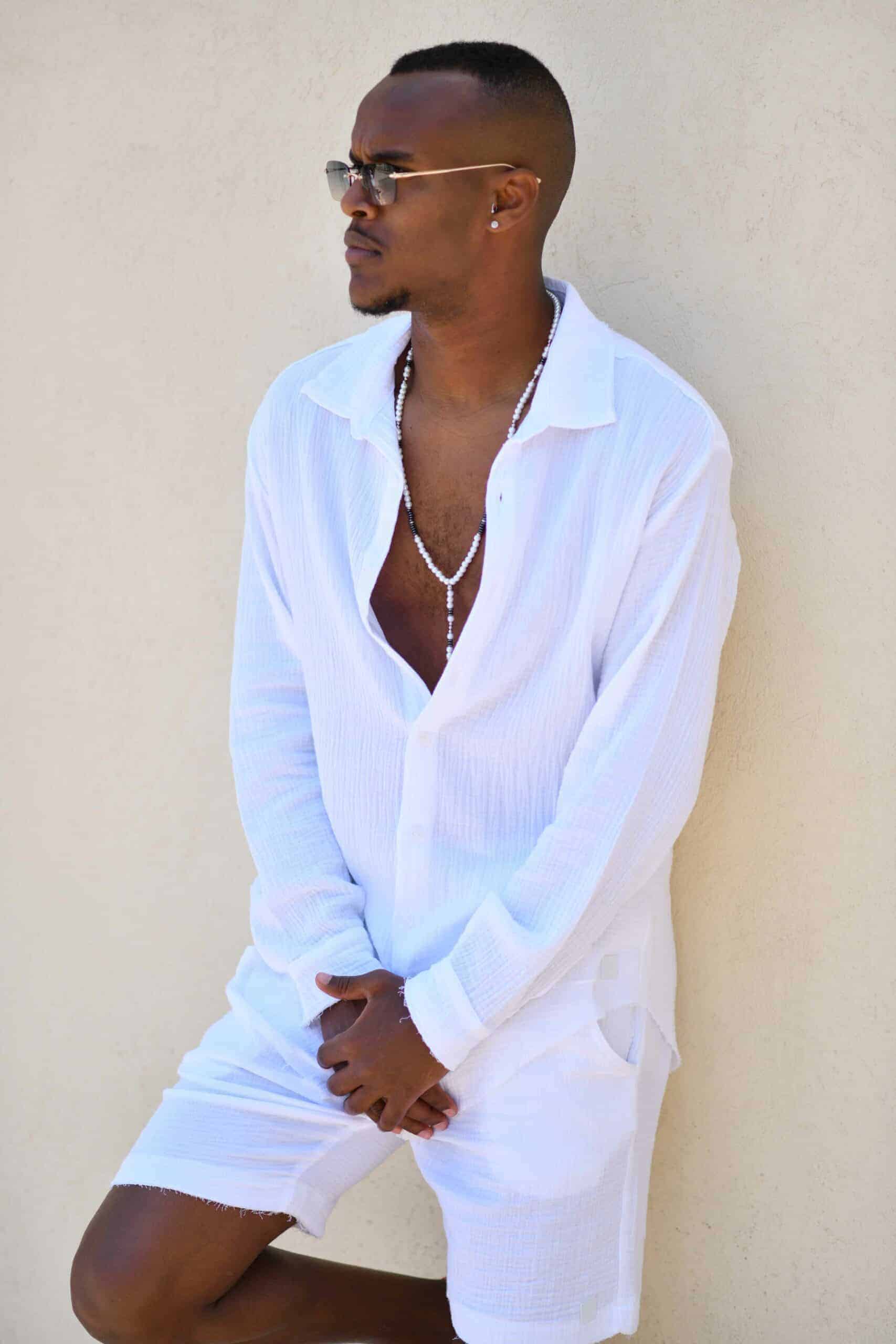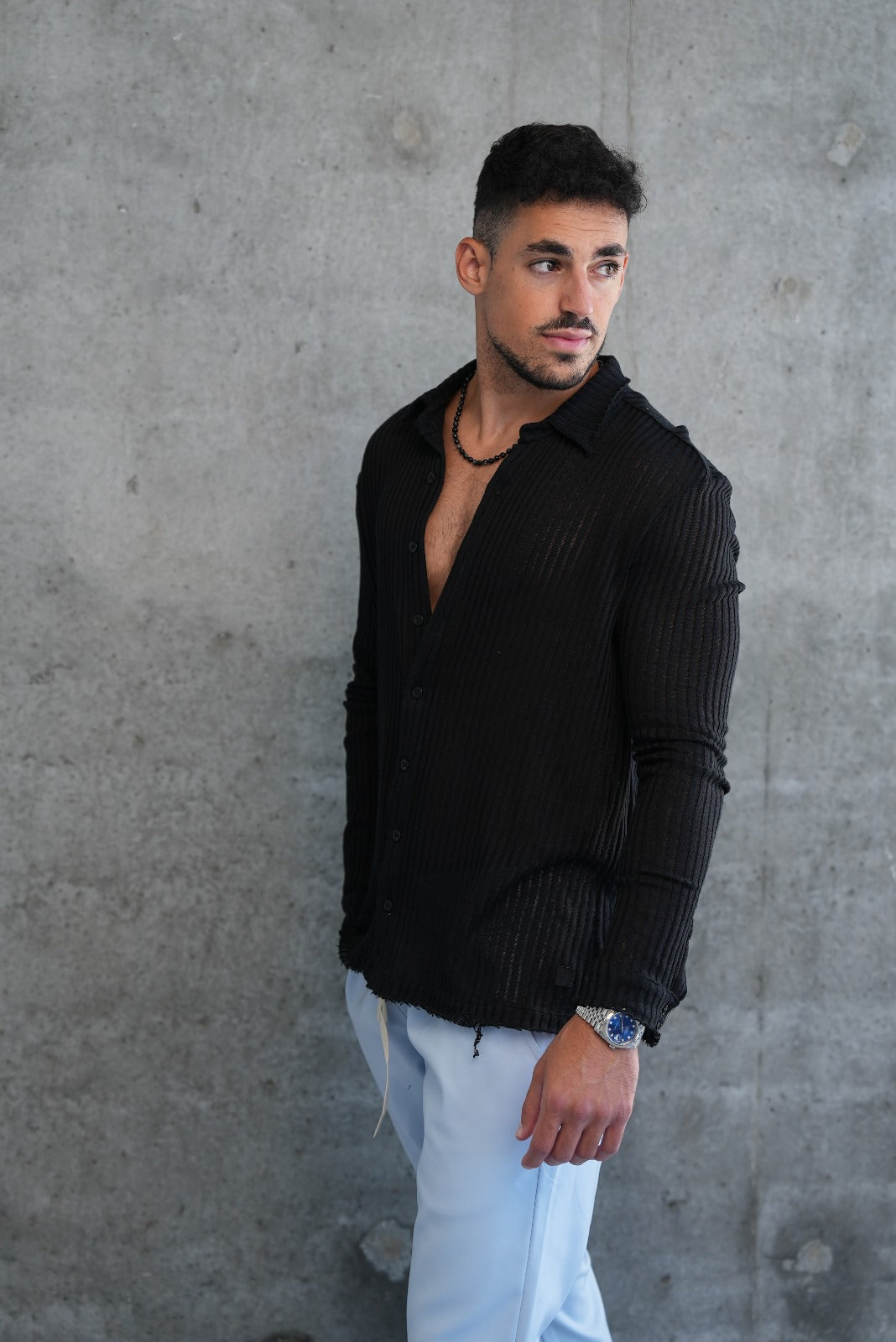 חולצת סאנטוריני מכופתרת שרוול ארוך