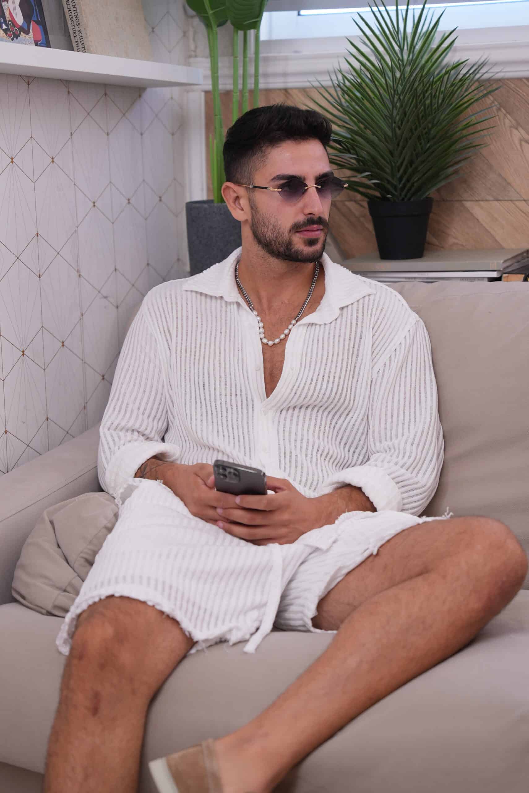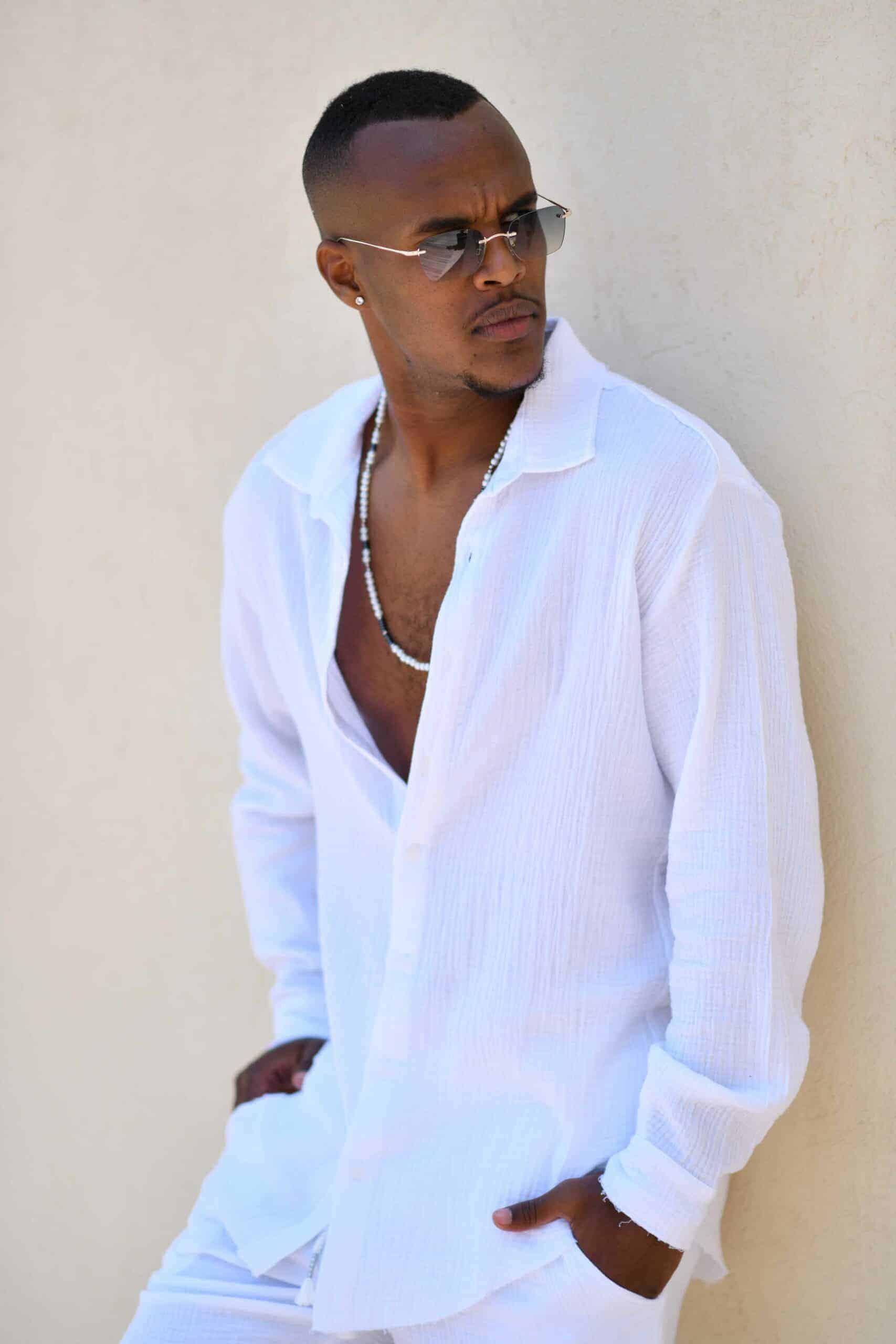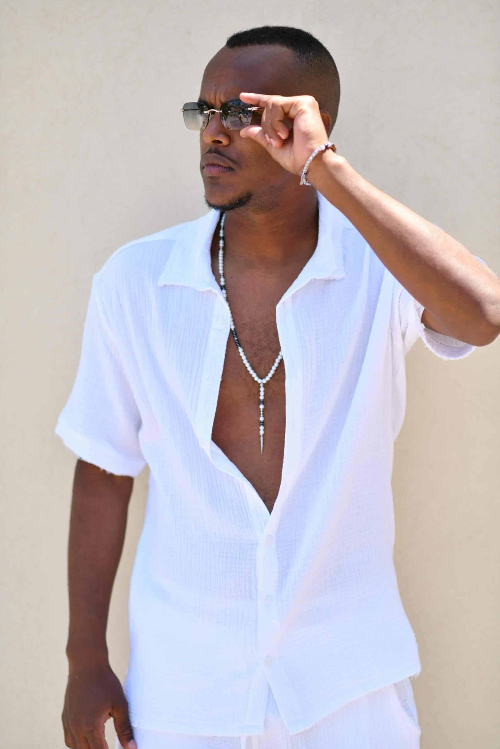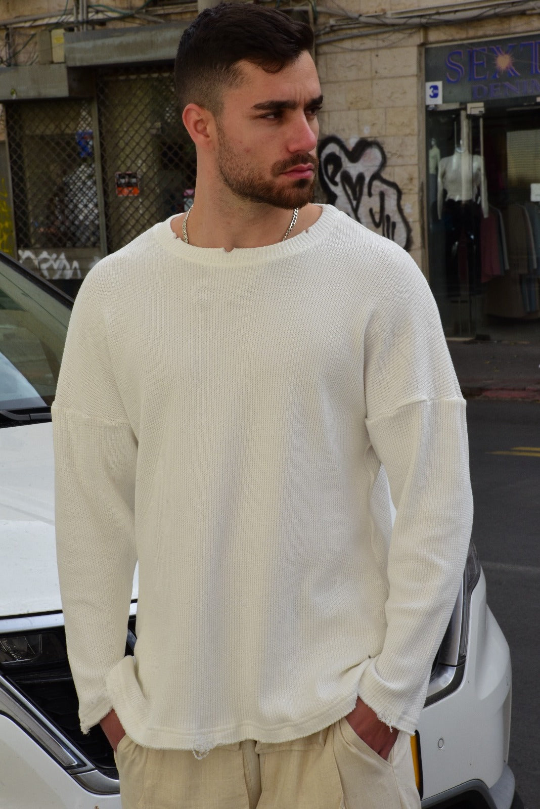 חולצת סאנטוריני מכופתרת שרוול ארוך
