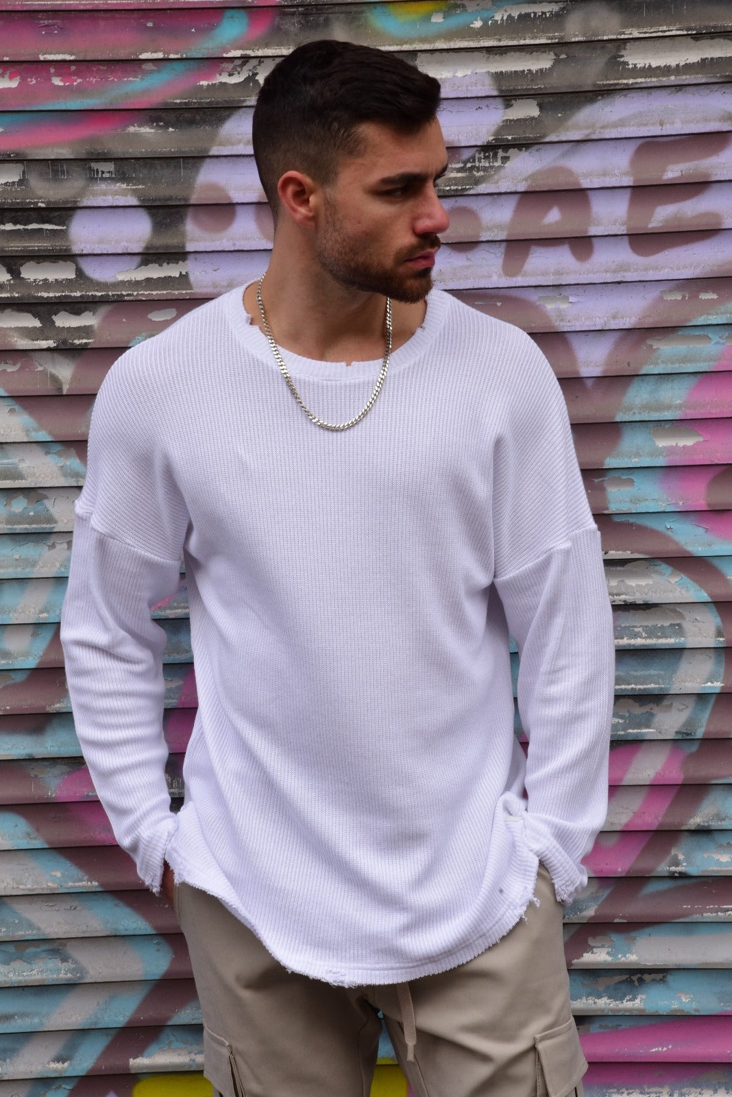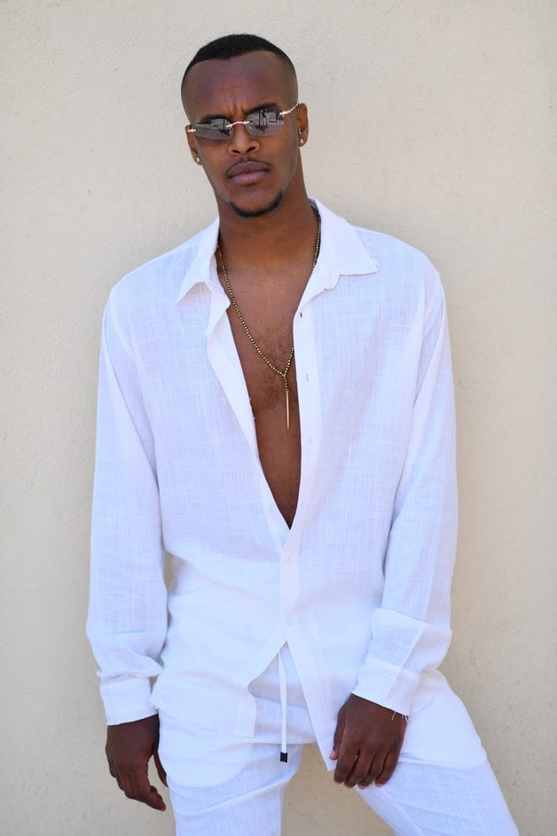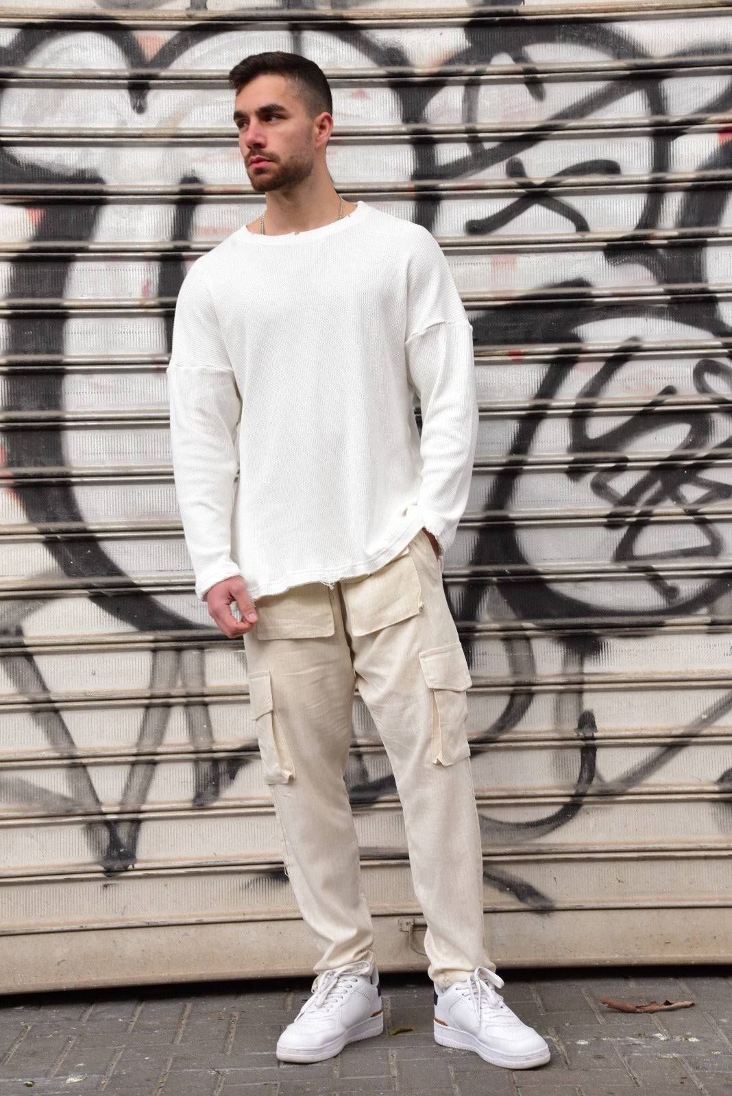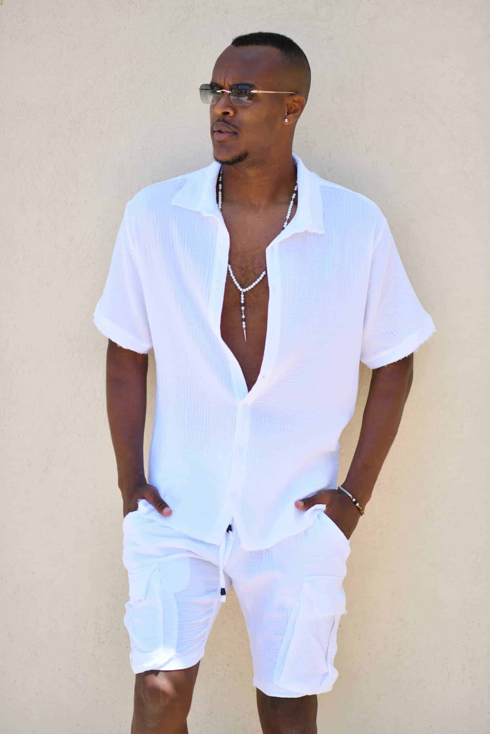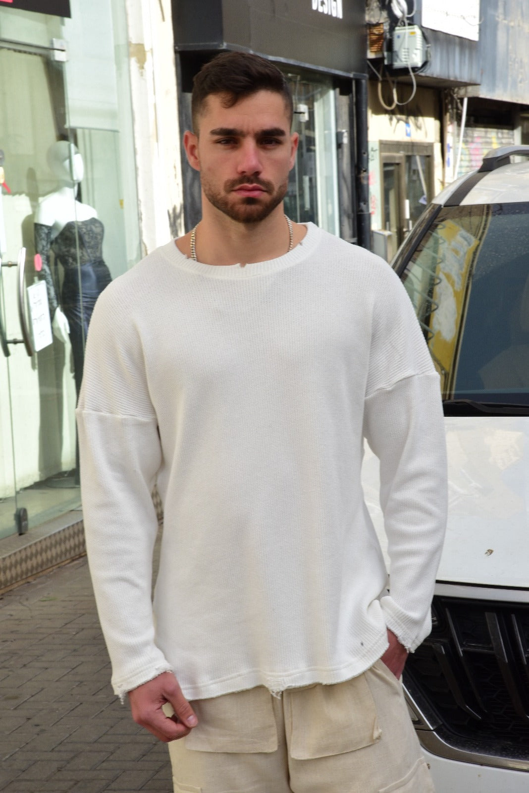 חולצת סאנטוריני מכופתרת שרוול ארוך