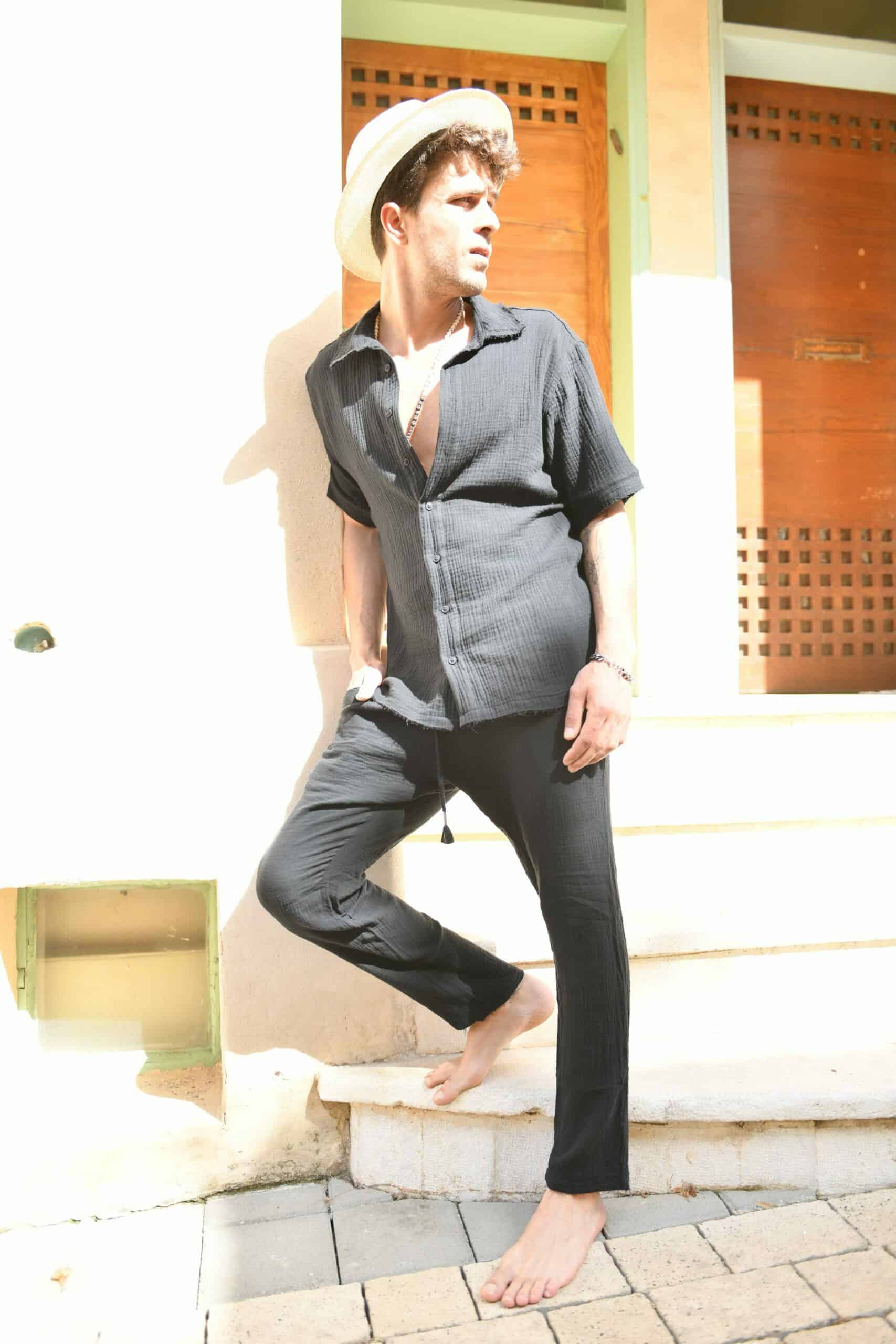 סט פשתן קצר שחור
