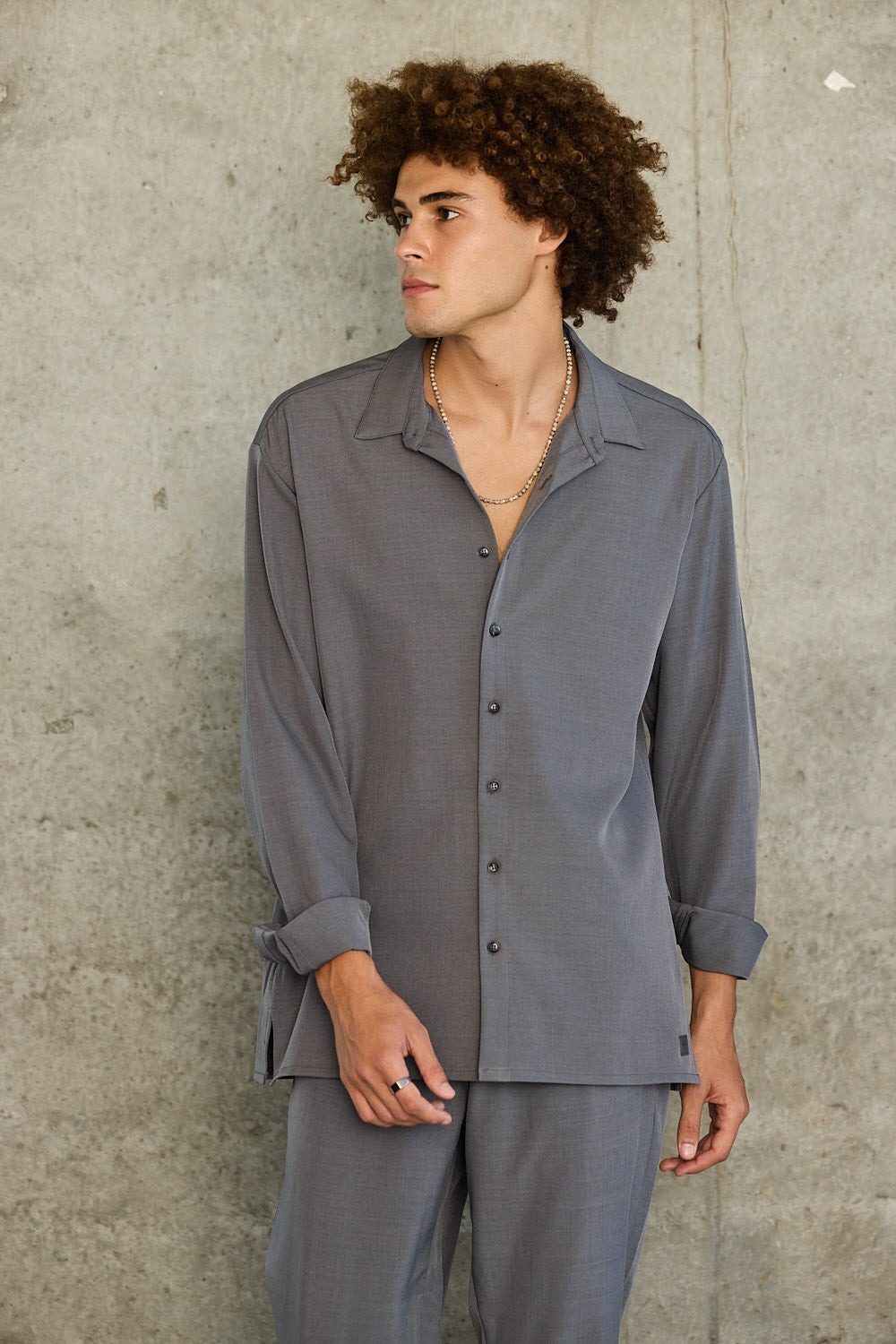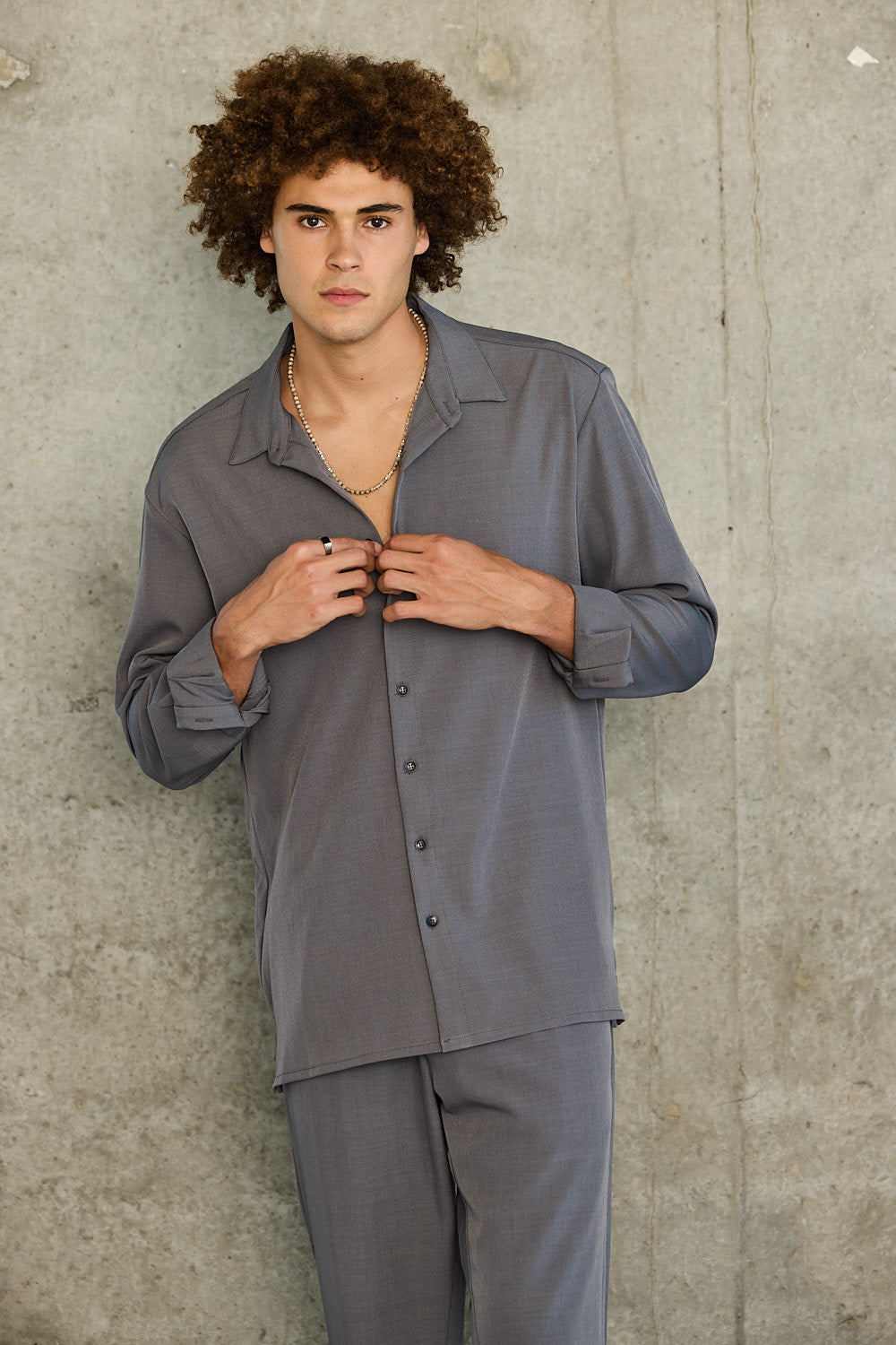 חולצה מכופתרת מקסמרה שרוול ארוך אפור בהיר